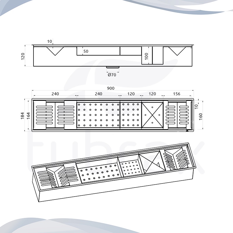 Canal Úmido Organizador Calha De Cozinha em Aço Inox 304 C/5 Módulos 90x18 - Tubrax
