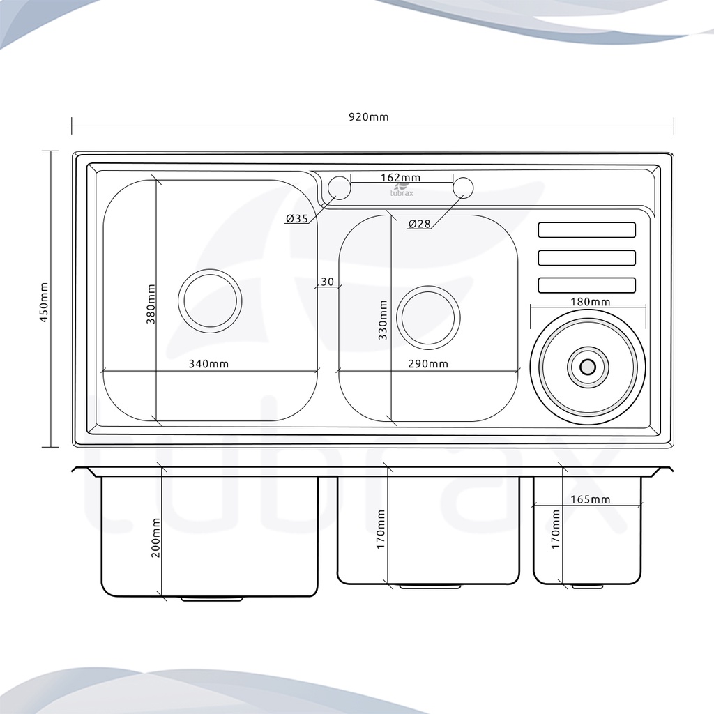 Pia Cuba Dupla de Cozinha Gourmet Com Lixeira em Aço Inox - CBC0007-C Tubrax