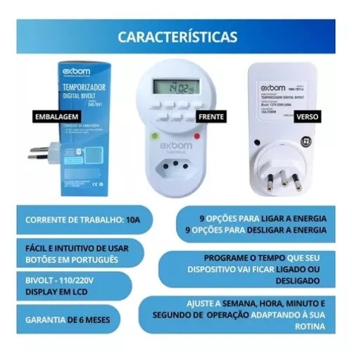 Timer Temporizador Digital Liga Desliga Bivolt ideal para otimizar seu tempo e economizar energia