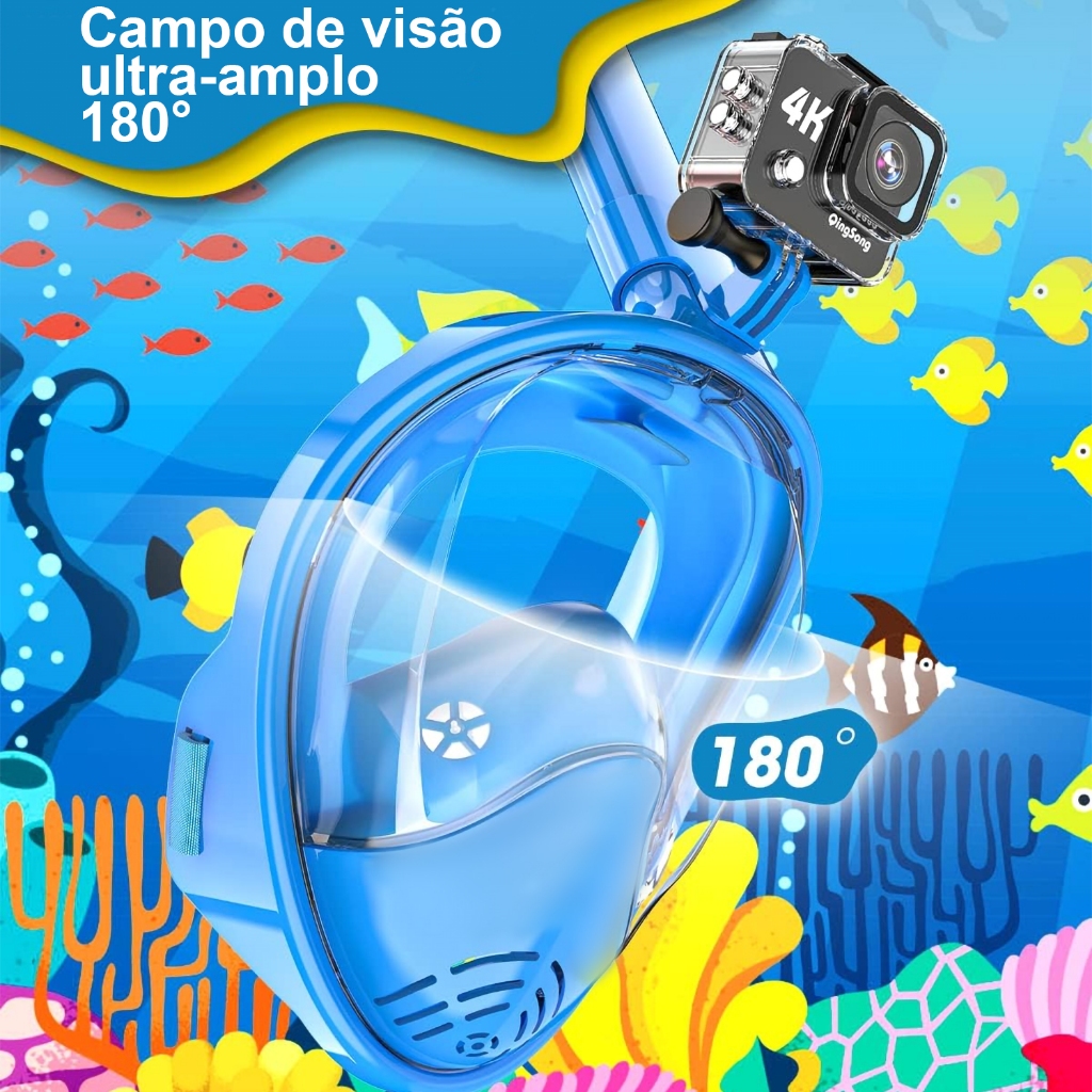 Brastoy Máscara Mergulho Snorkel Full Face Com Suporte Gopro Câmera Para Adulto e Crianças