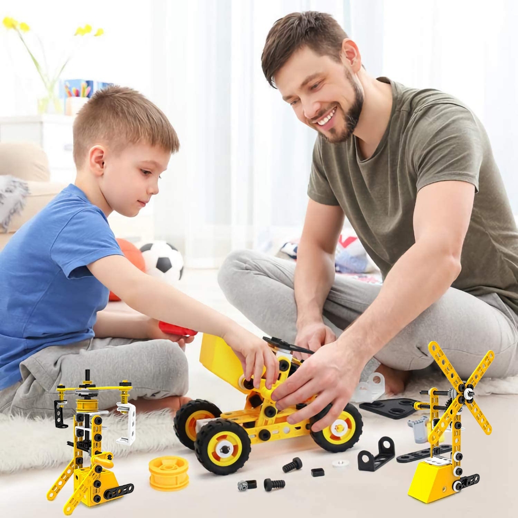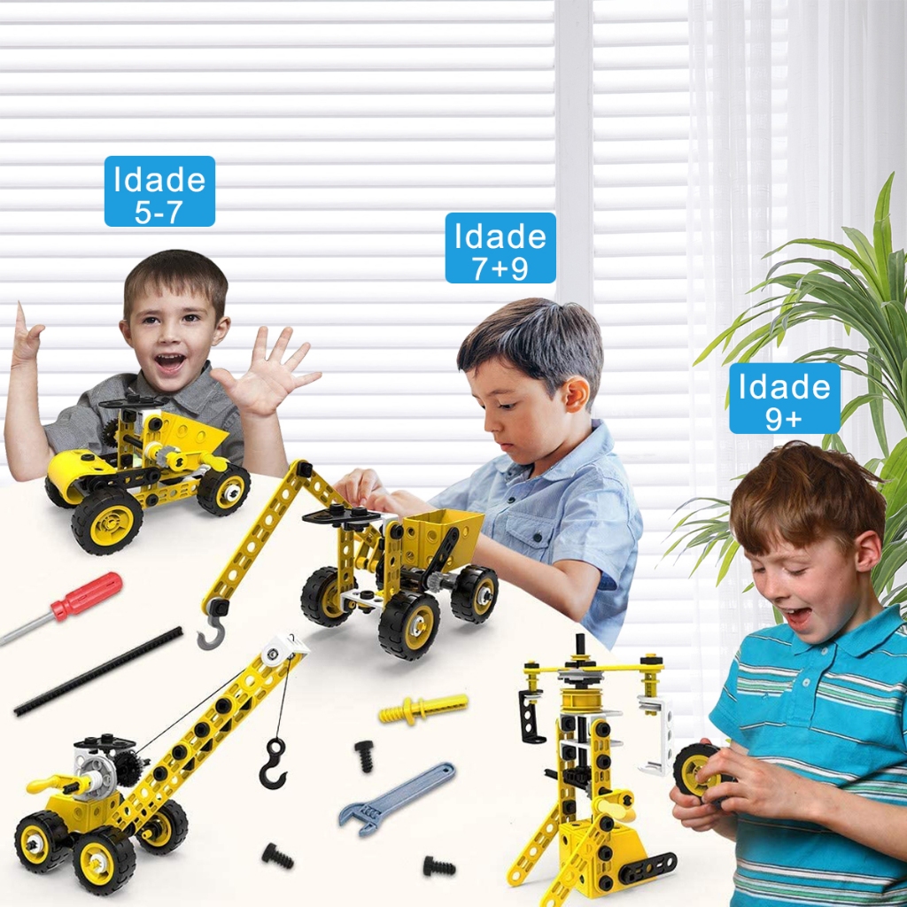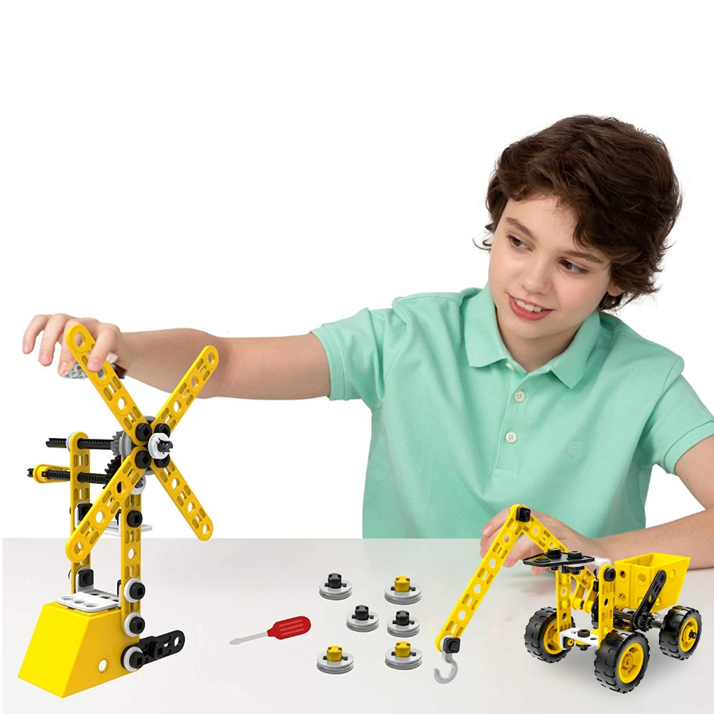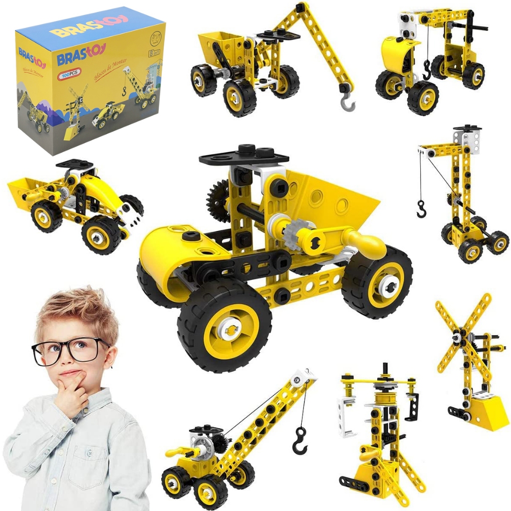 Brastoy 100 Peças Brinquedos educativos STEM Blocos de Montar Construção Escavadora Engenharia Infantil