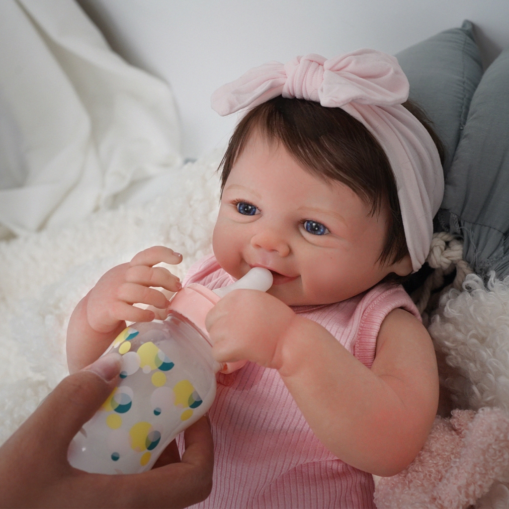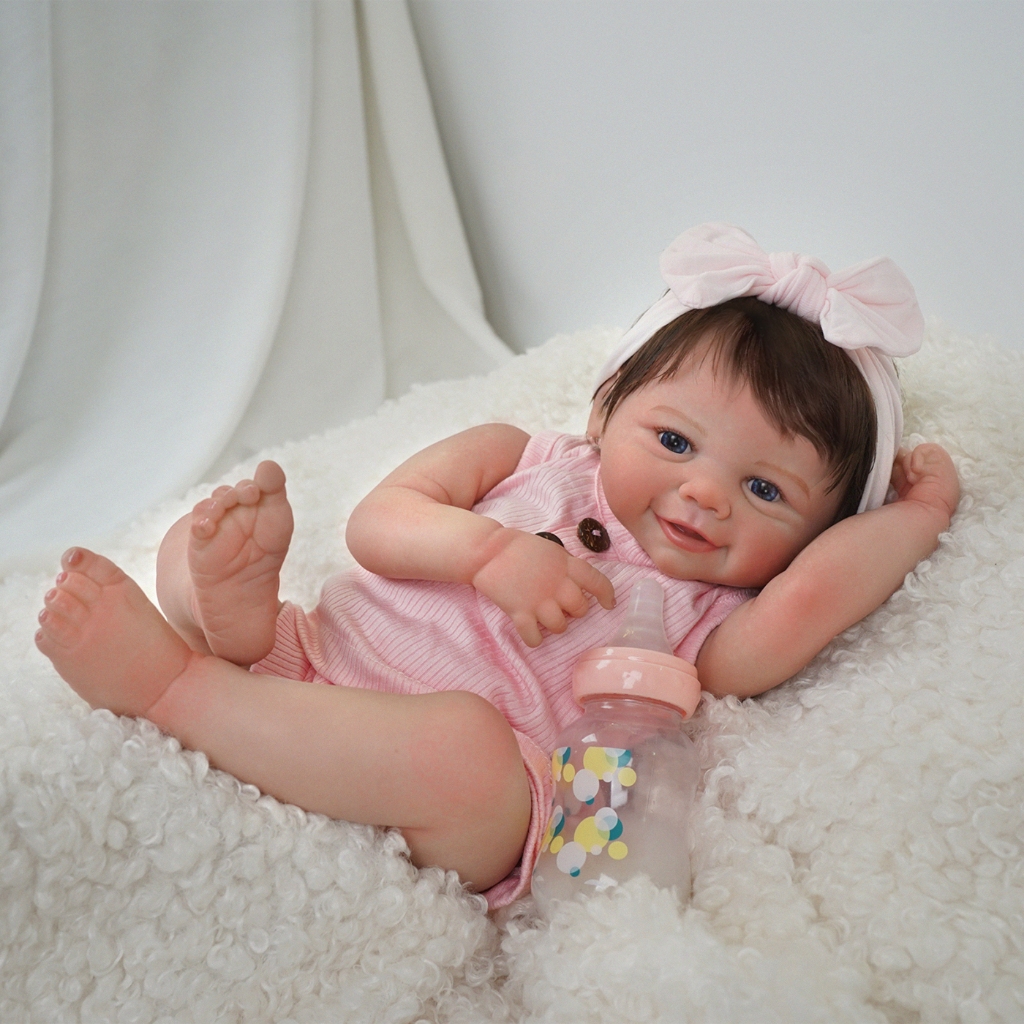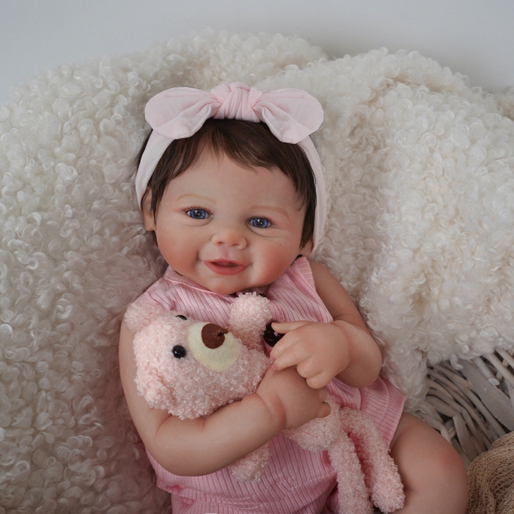 Bebê Reborn Boneca Silicone 48cm Menina Rosa Olho AzulRealista Pintado Brastoy
