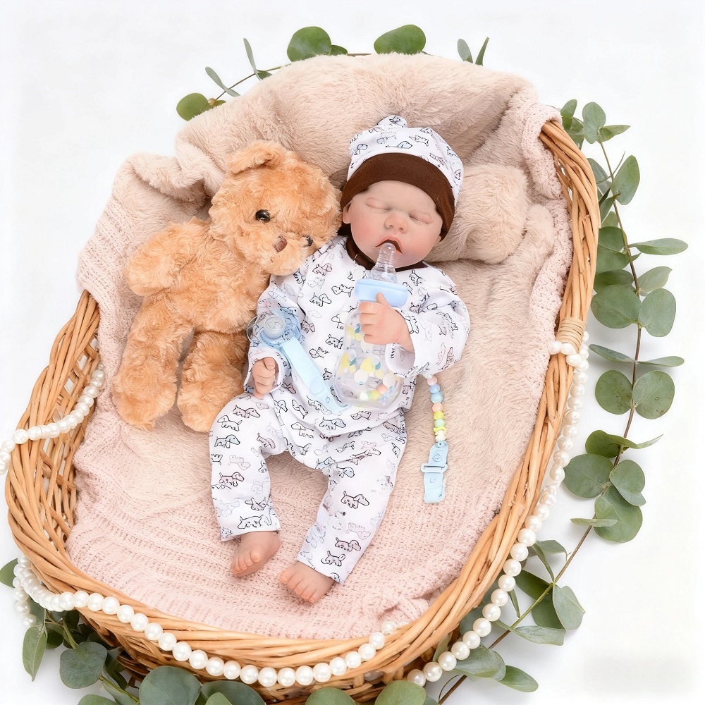 Brastoy Bebê Reborn Silicone 48cm Menina/Menino Pintada Realista Olho Fechado