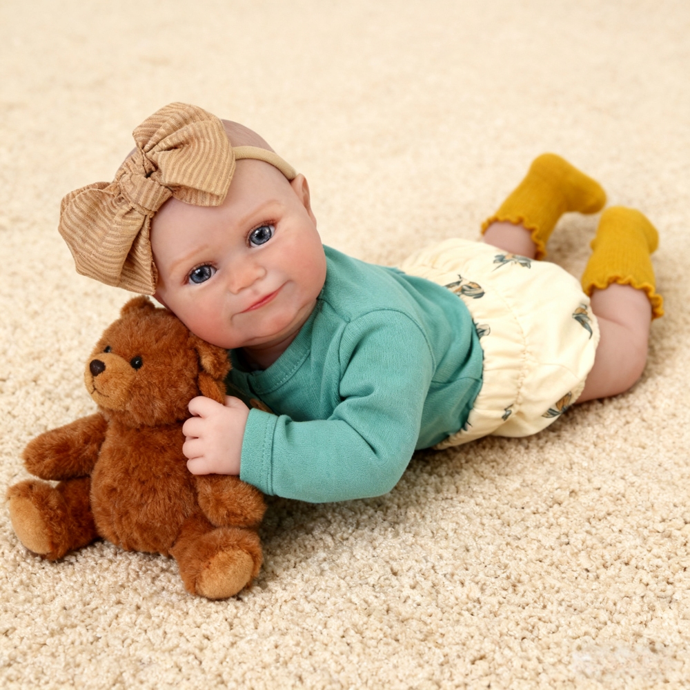 Bebê Reborn Maddie 48cm Boneca Silicone Menina Realistic Pintado Olhos Azuis Brastoy