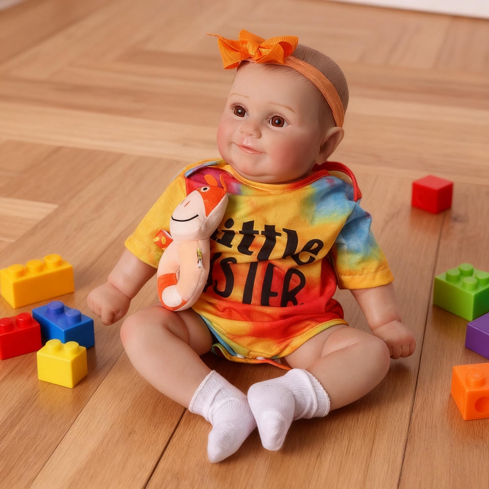 Brastoy Bebê Reborn Silicone Boneca 48cm Menina Maddie Ohlo Castanho