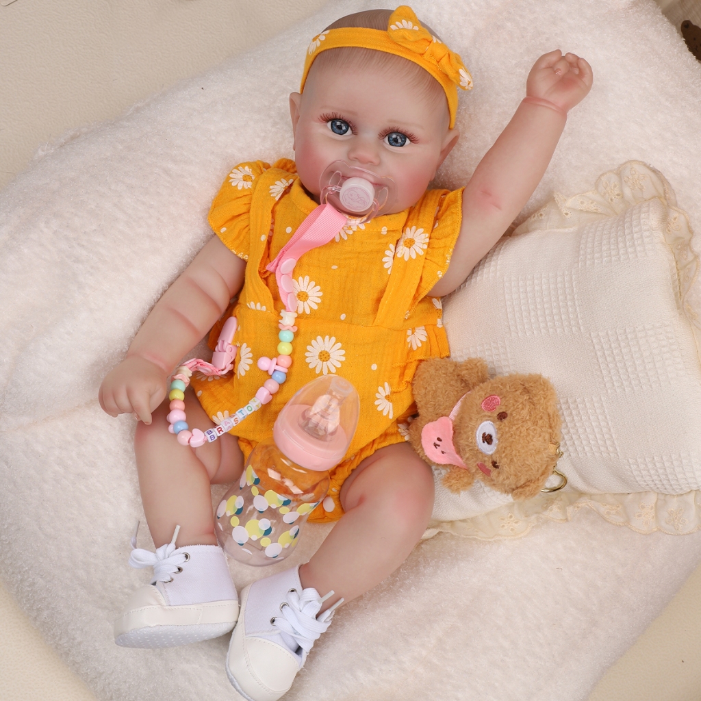 Bebê Reborn Boneca Silicone 48cm Maddie Ohlo Azul Banho Brastoy