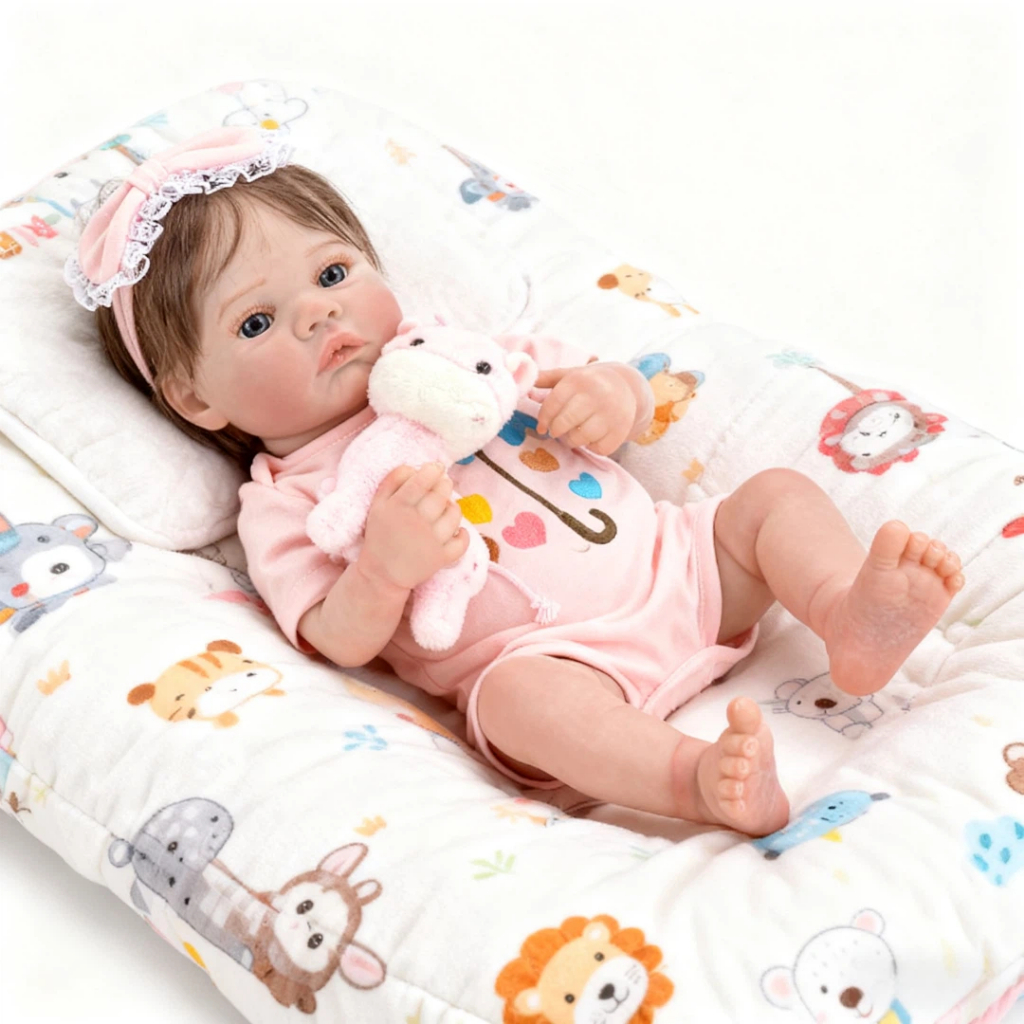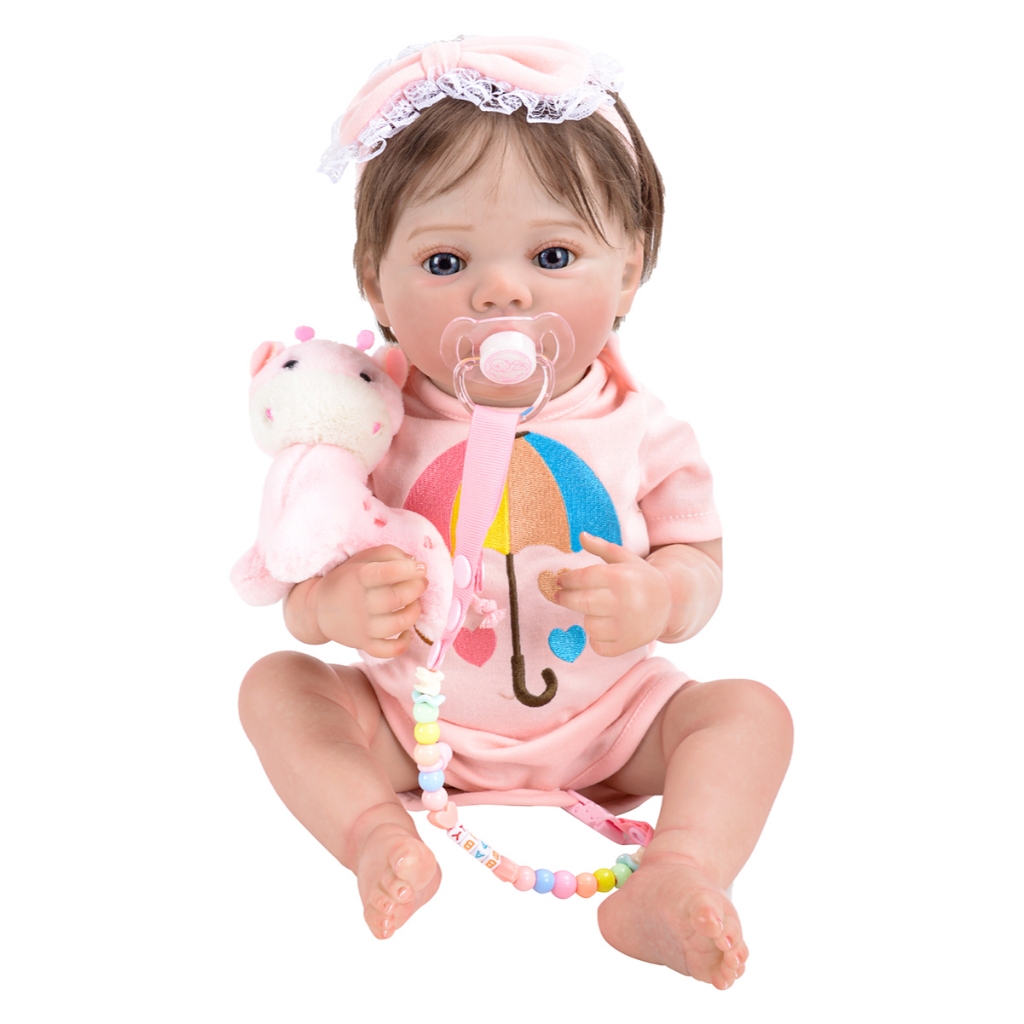 Bebê Reborn Boneca Silicone Realista 48cm Menina Ohlo Azul Pode dar Banho Brastoy