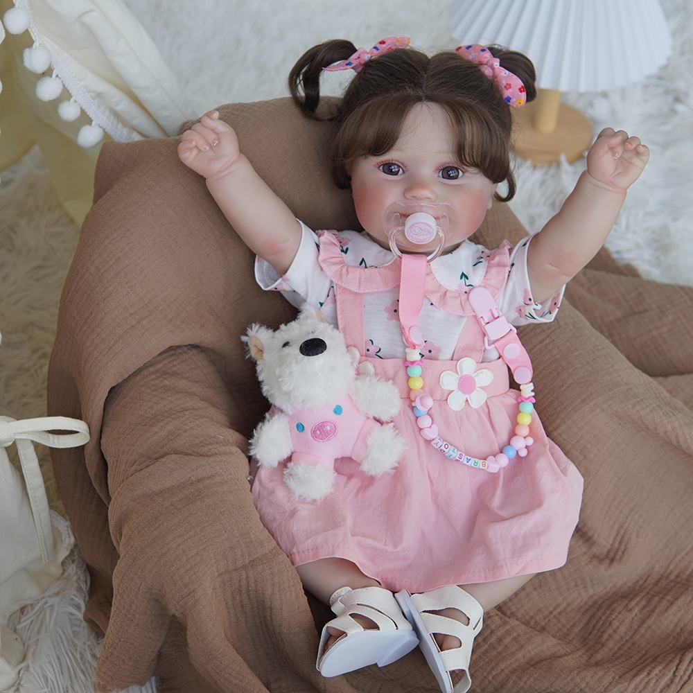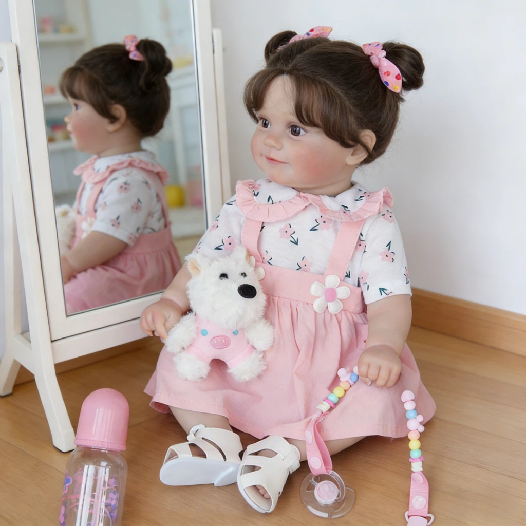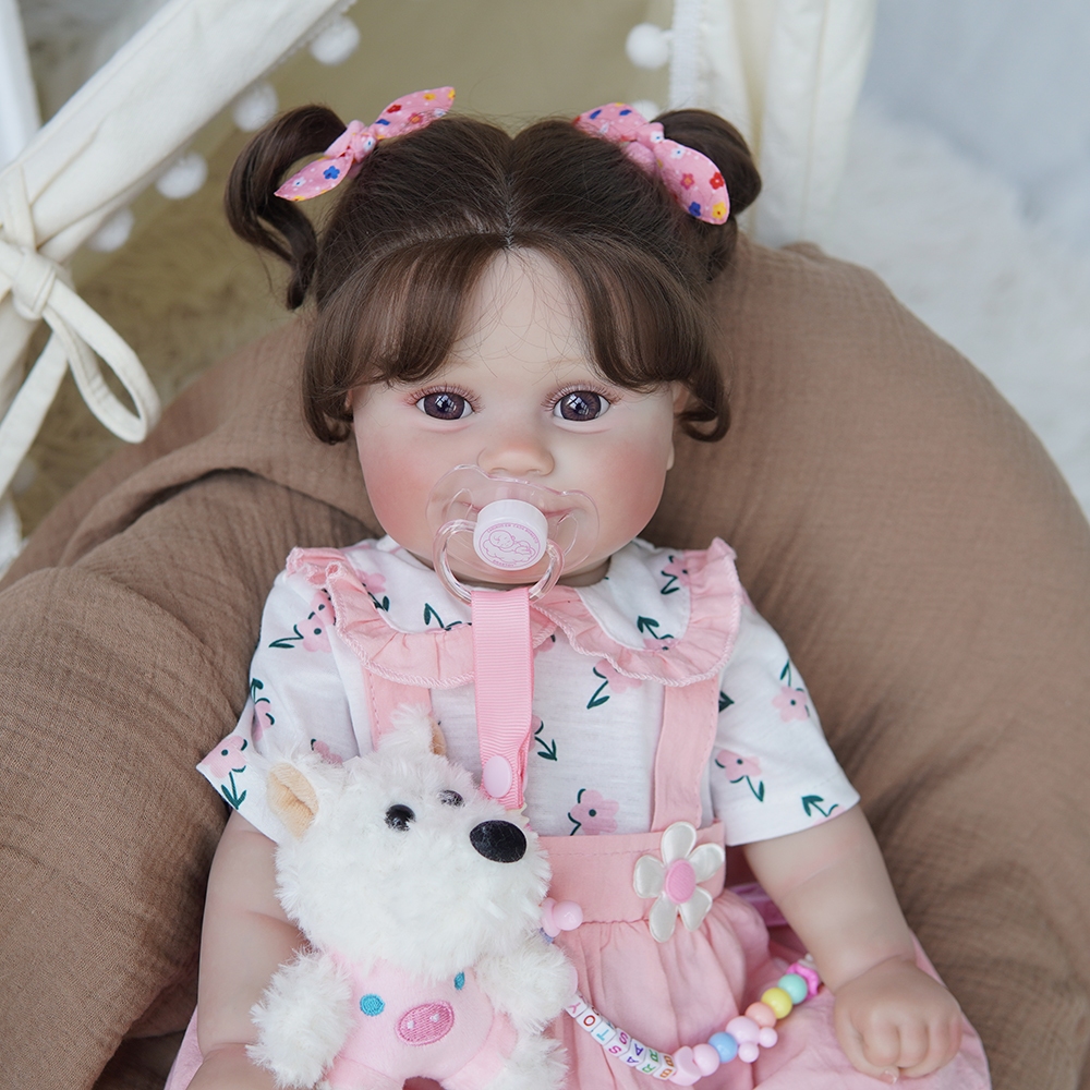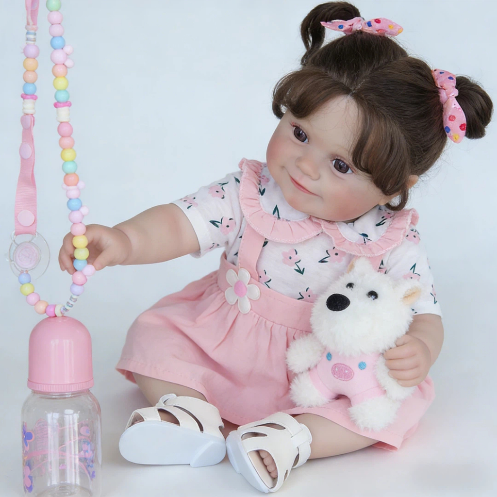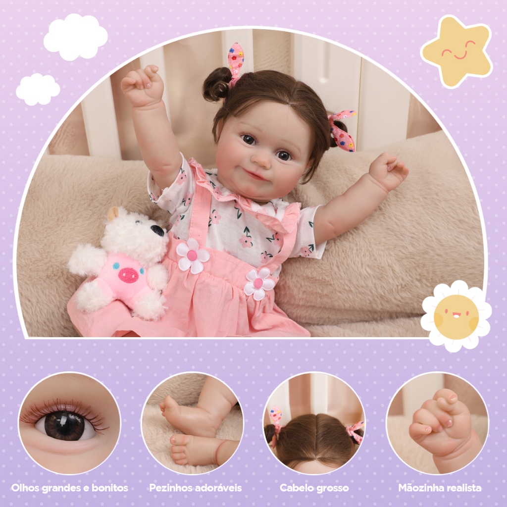 Boneca Reborn Bebê Realista Menina 48cm Maddie Ohlo Castanho Pode dar Banho Com Muitas Veias Detalhadas Brastoy