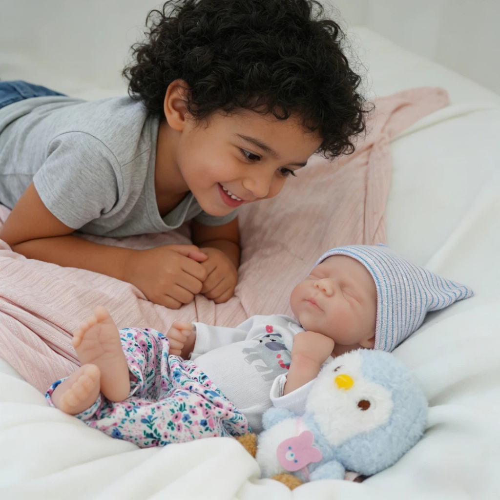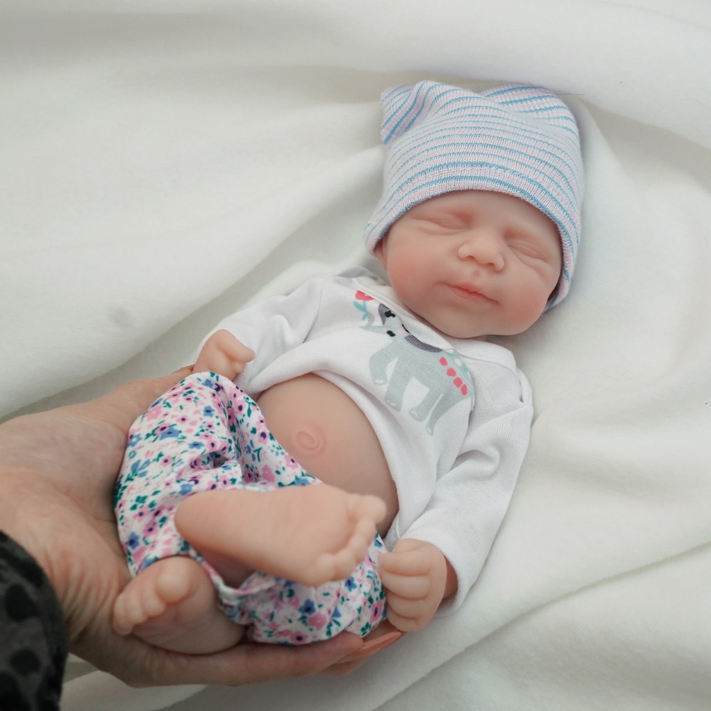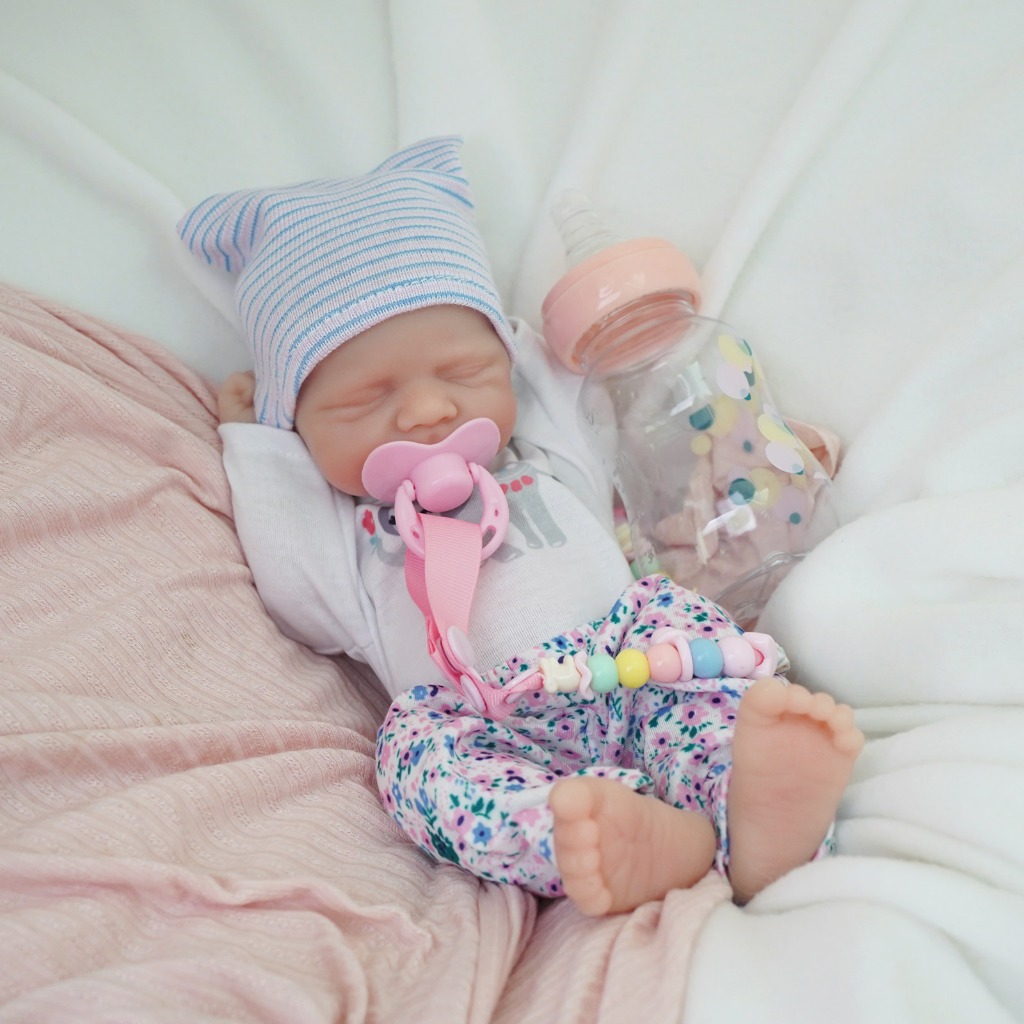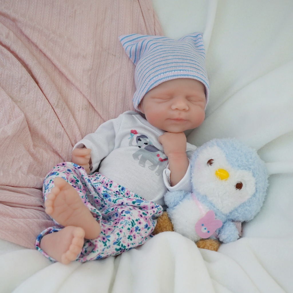 Bebê Reborn Menina de Silicone Sólido 35cm Olho Fechado Pele Suave com Acessórios