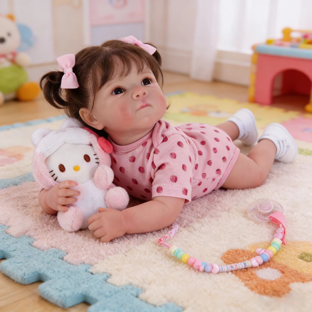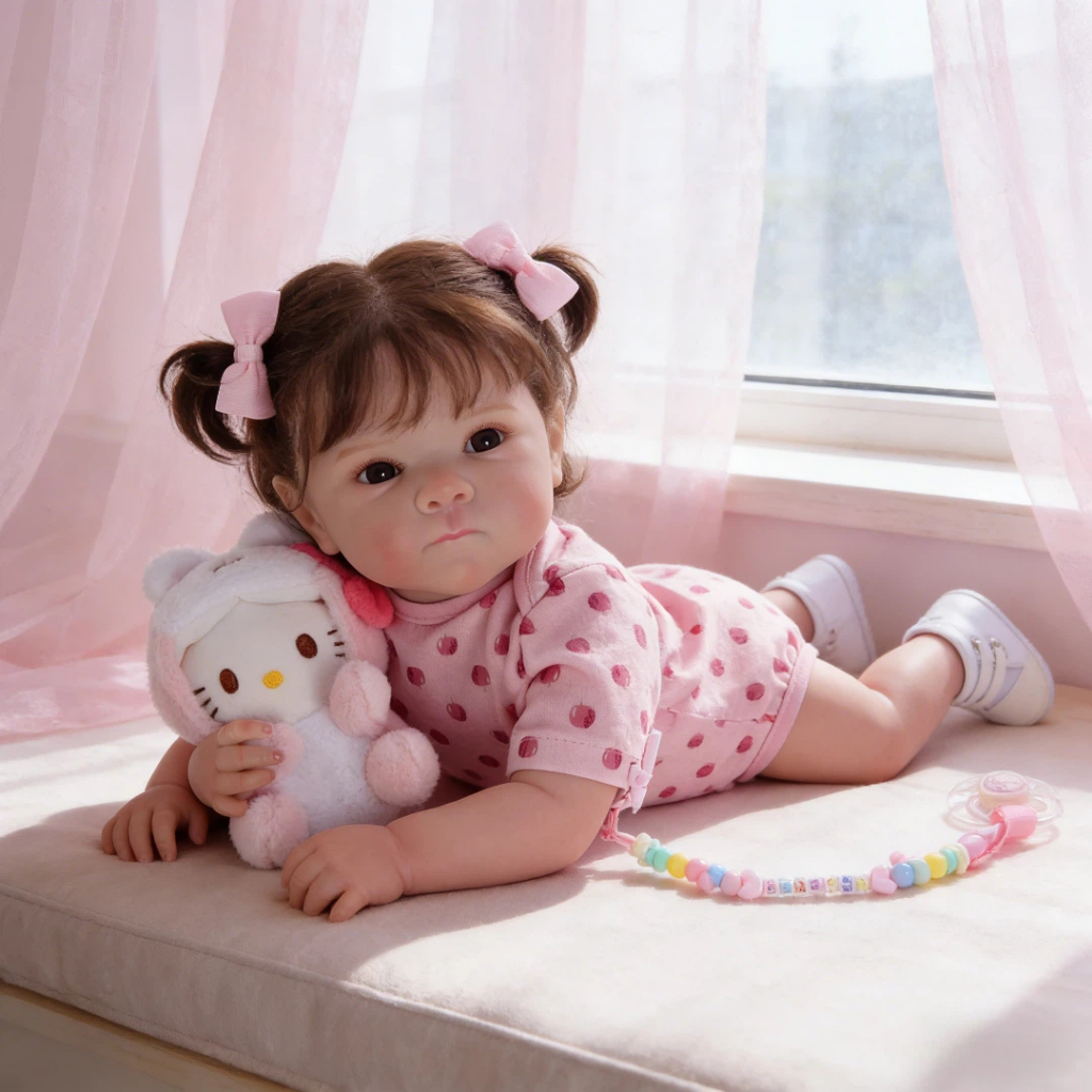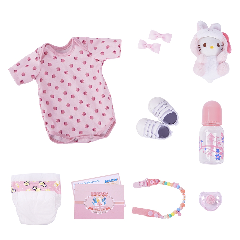 Bebê Reborn Boneca Silicone 48cm Menina Olho Castanho Kit com Acessórios Brastoy