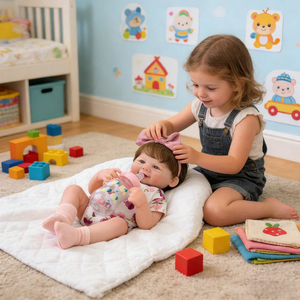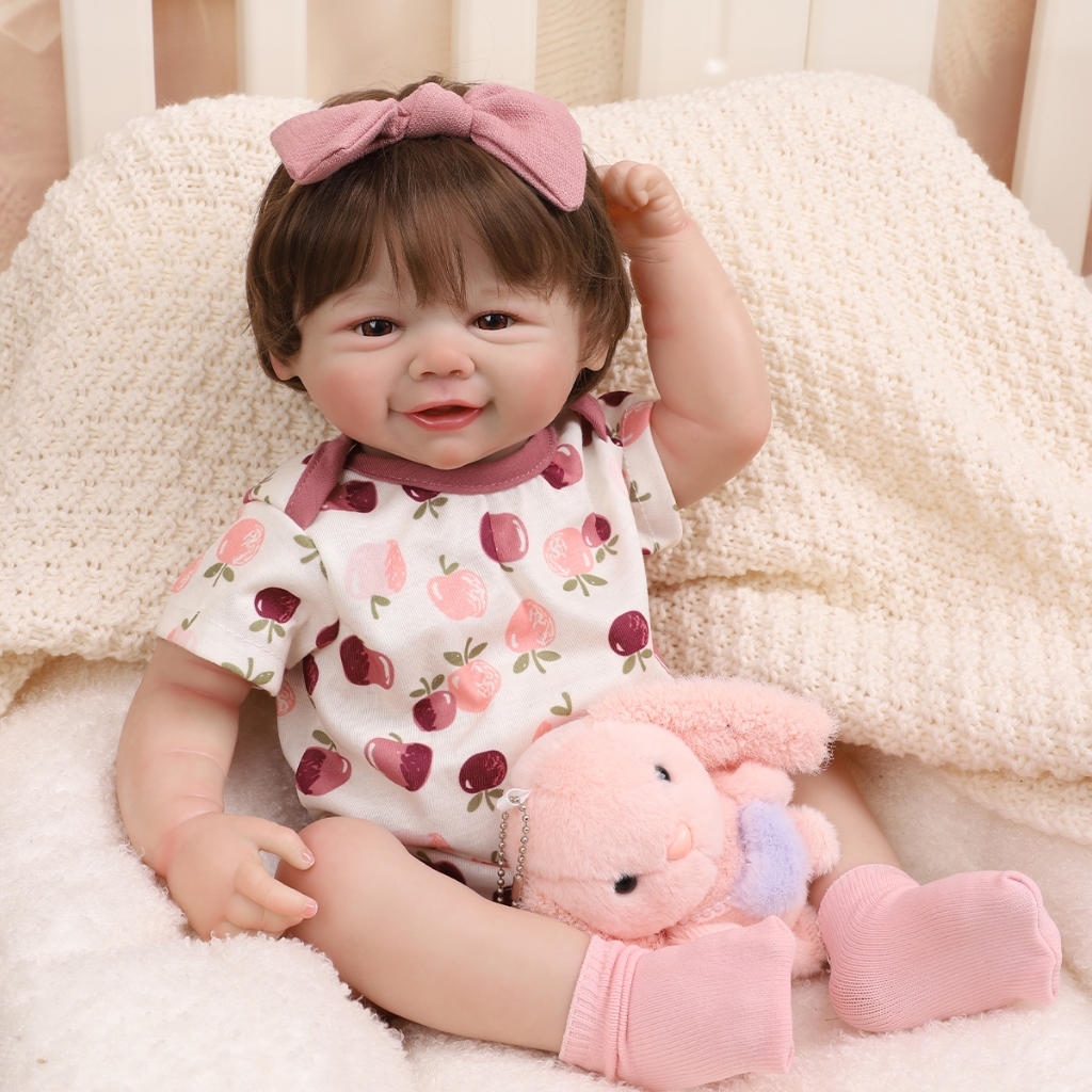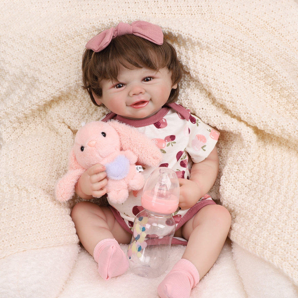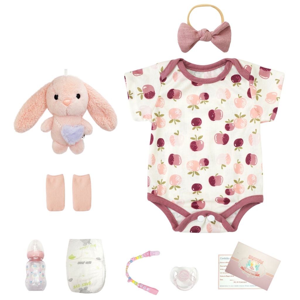 Bebê Reborn Boneca Silicone 48cm Menina Ohlo Castanho com Acessórios Brastoy