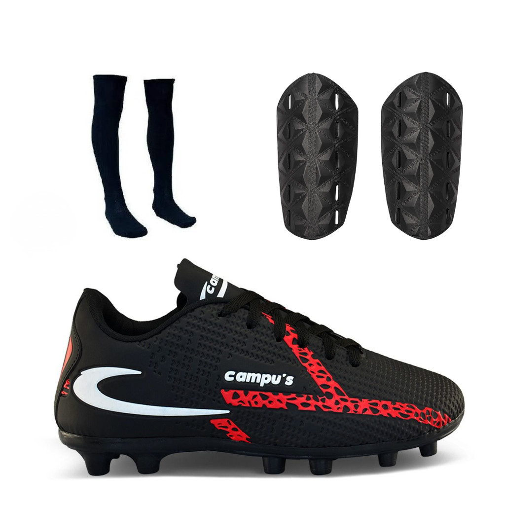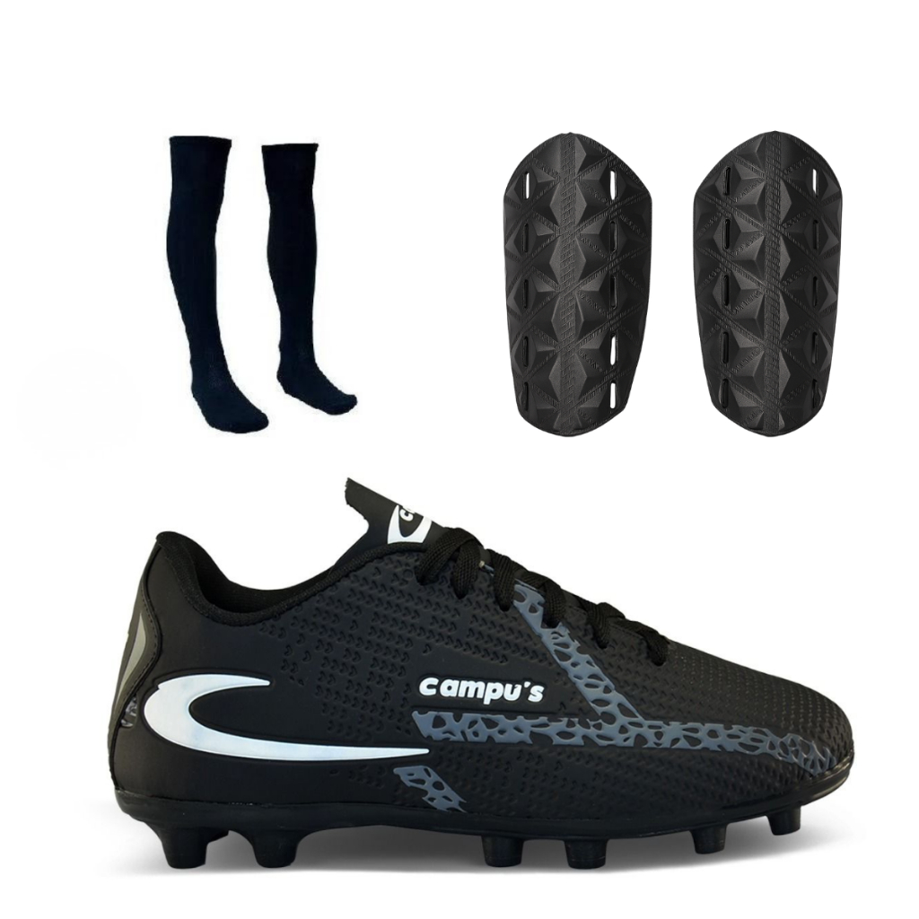 Kit Chuteira De Campo Caneleira e Meião Masculina Com Trava Resistente