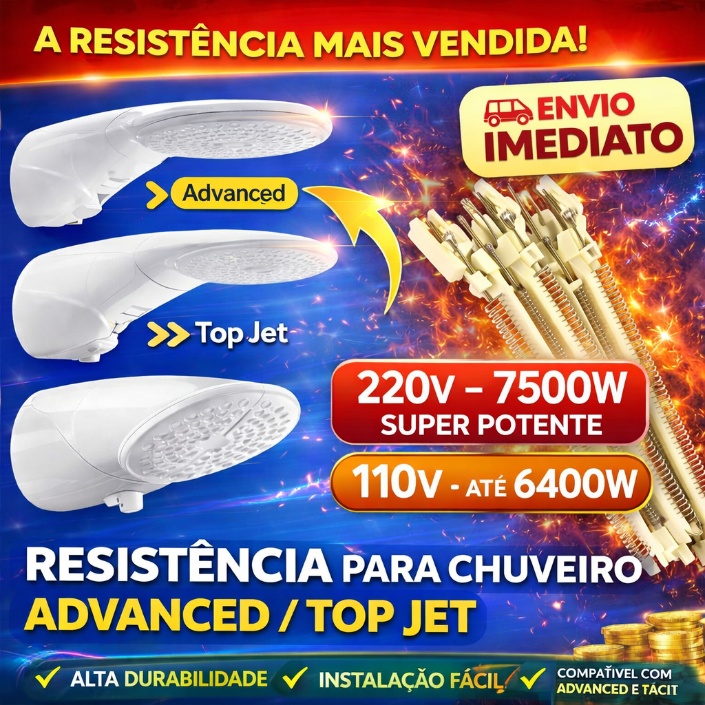 Resistência Ducha Advanced, Ducha Advanced Turbo, Advanced Top Jet Chuveiro Lorenzetti 220V (7500W)