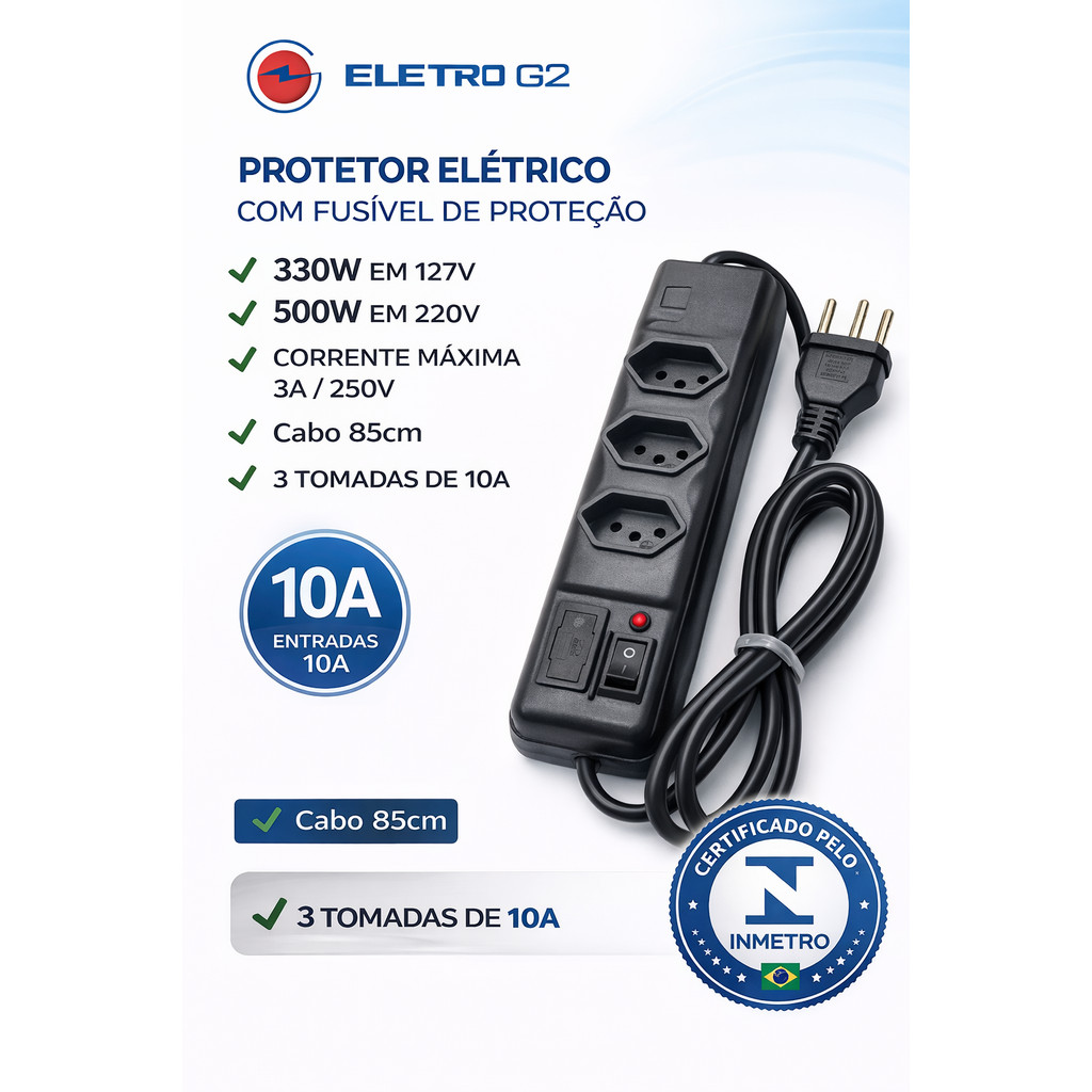 Filtro de Linha 3 e 4 TOMADAS EXTENSÃO ELÉTRICA INMETRO