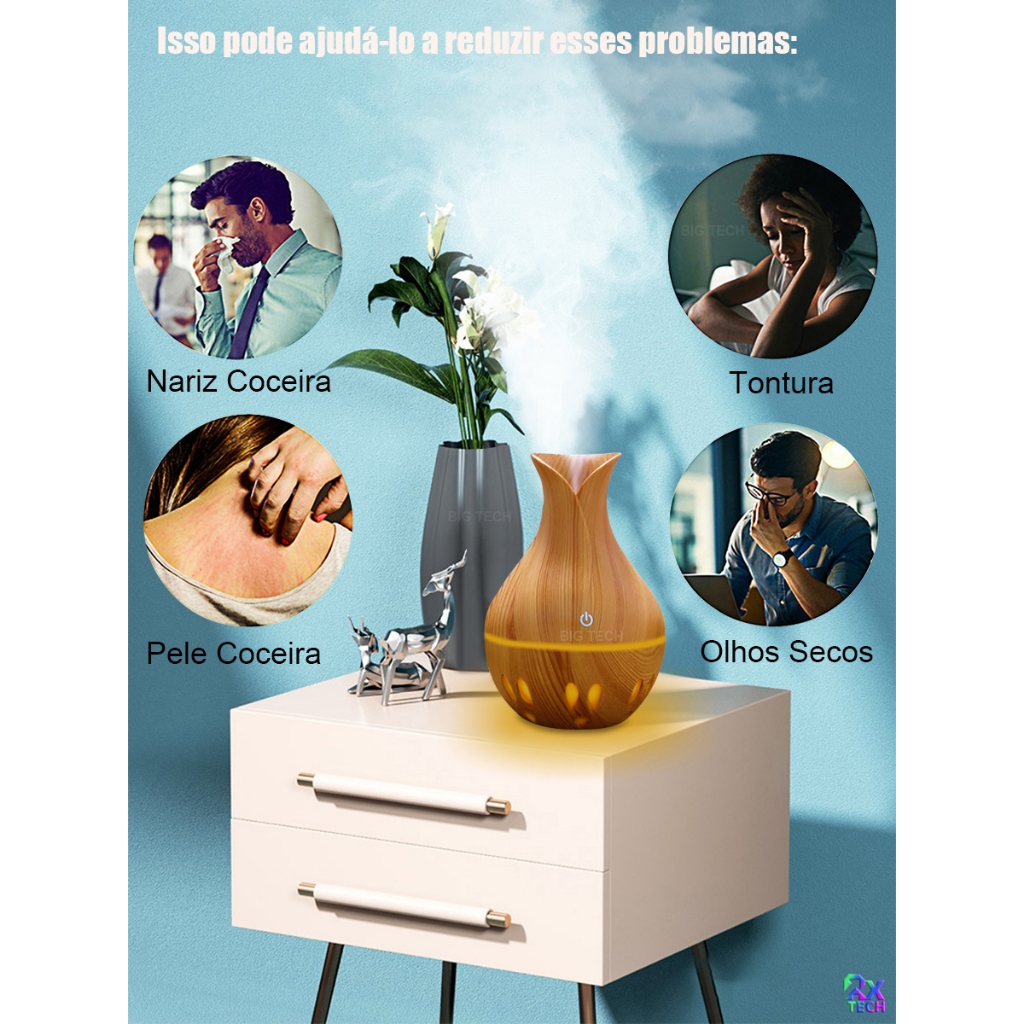 2 Unidades Mini Umidificador De Ar E Aromatizador De Ambiente Com Led Usb Purificador Ultrassônico Difusor Eelétrico