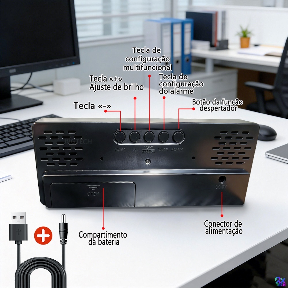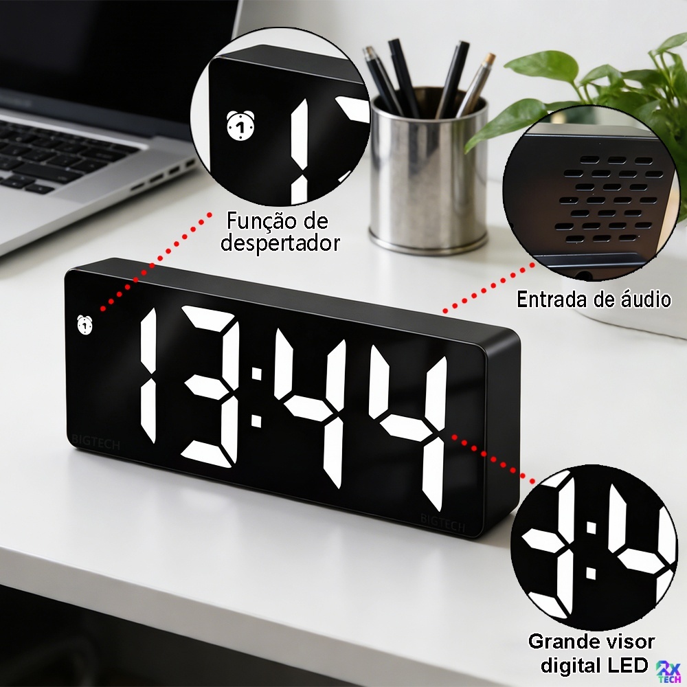 Relógio De Mesa Digital Led Despertador Alarme Temperatura Data Moderno e Minimalista sz0712