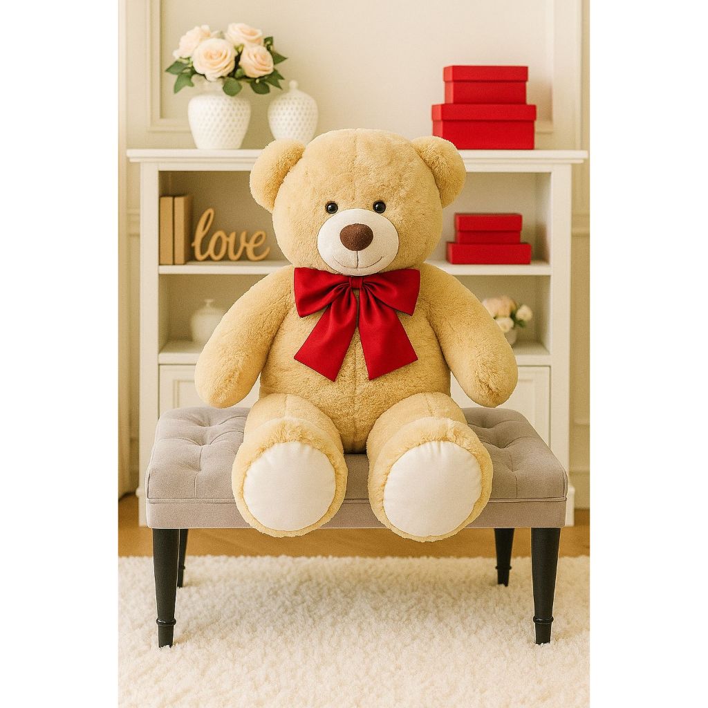 Urso De Pelúcia Teddy Bear Grande Com Laço 50 cm Antialérgico - Envio Imediato