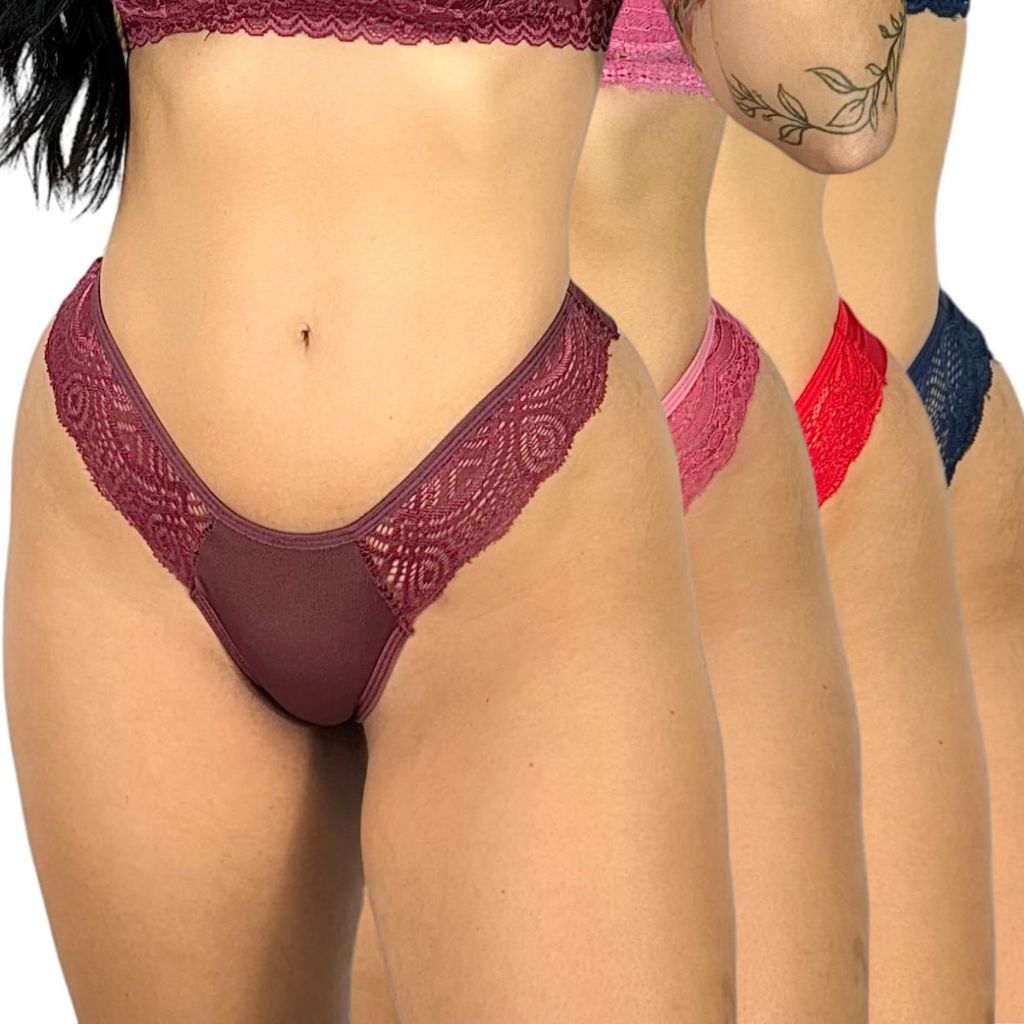 Kit 5 Calcinha Fio Duplo Lingerie Renda Lateral Confortavel Tanga Dia Dia Moda Intima Feminina
