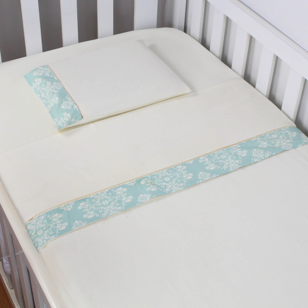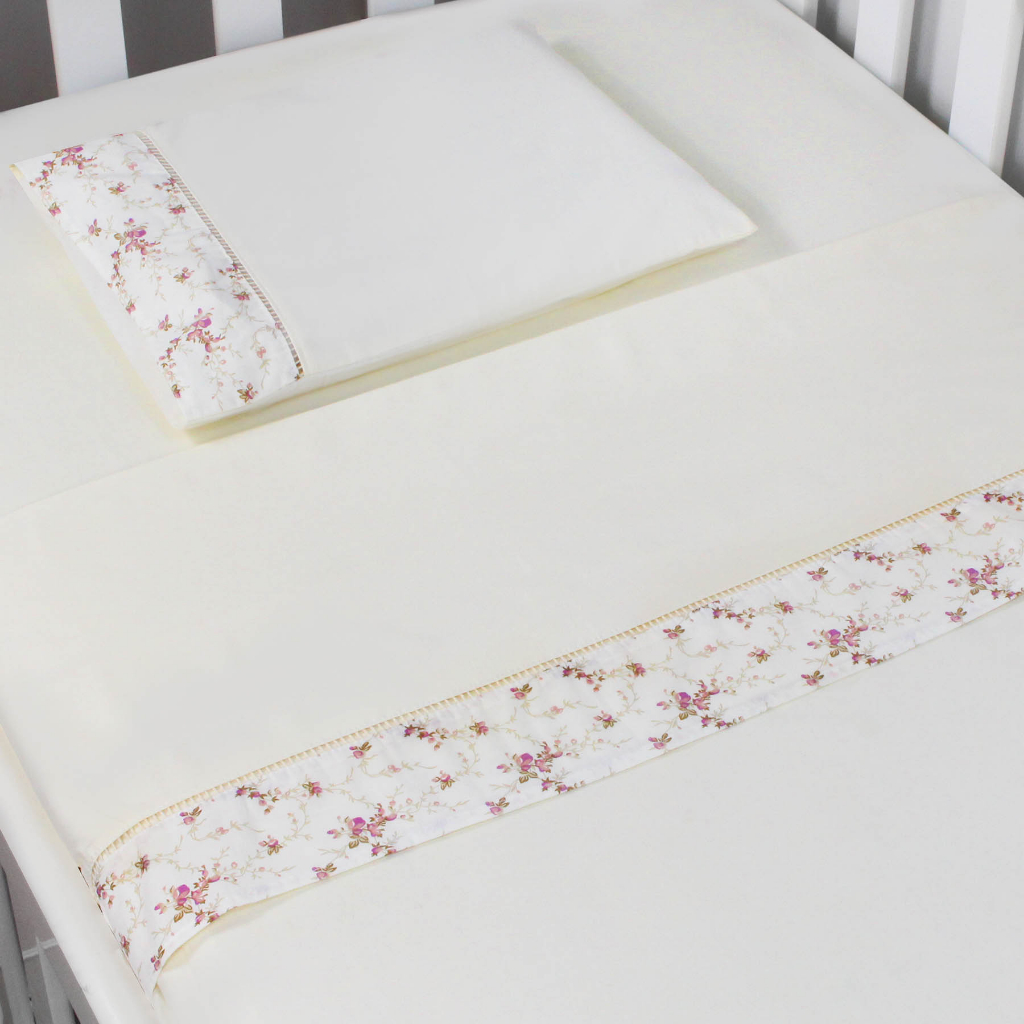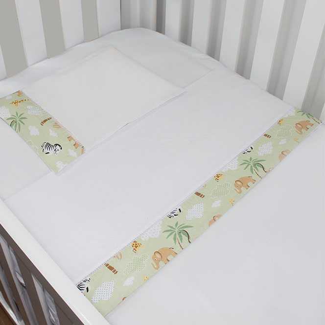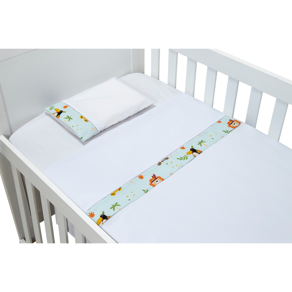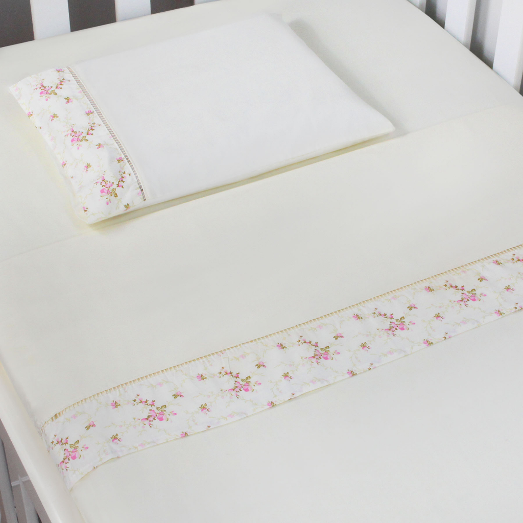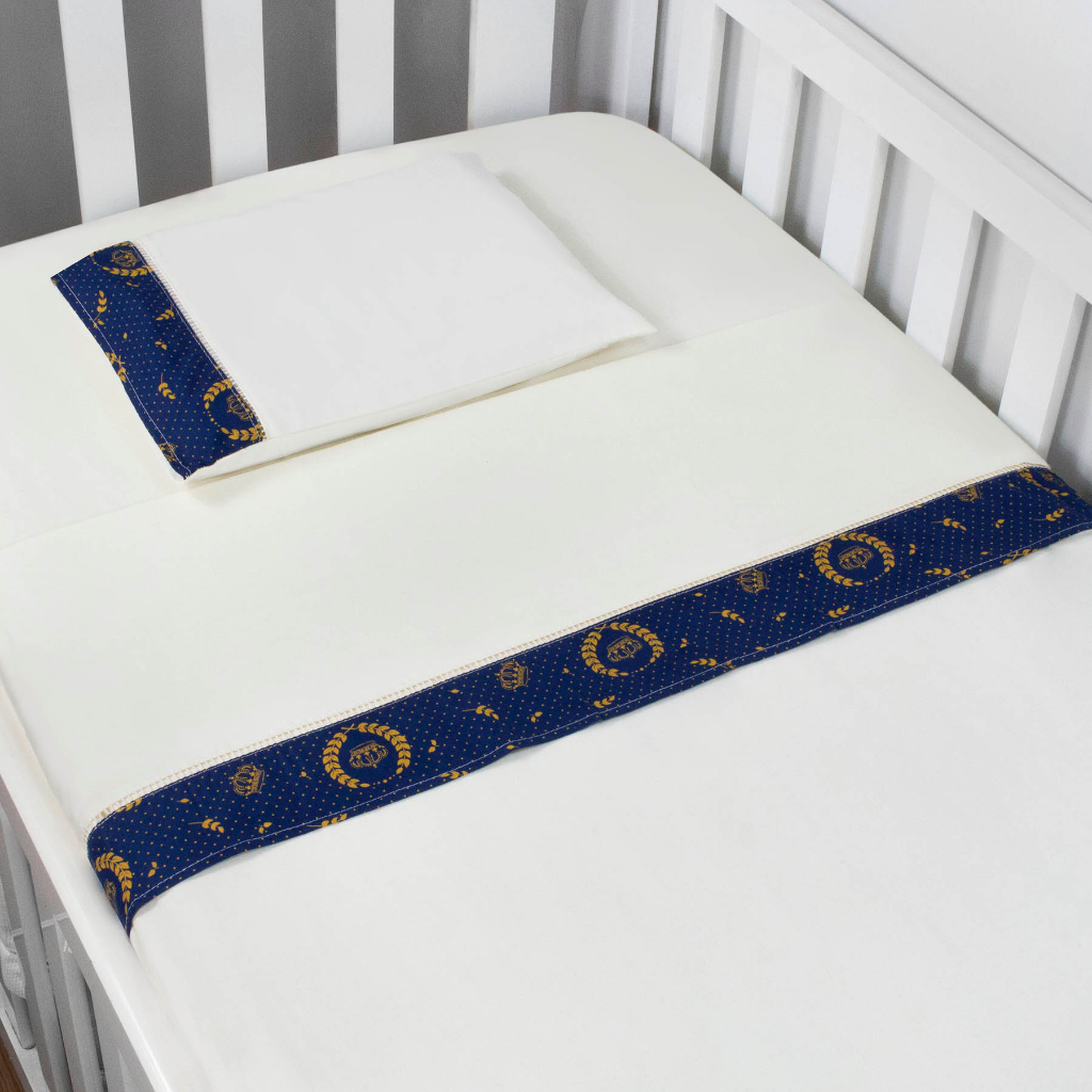 Jogo de Lençol de Mini Berço 03 pçs 100% Algodão com Elástico Vira Estampado Acabamento Ponto Palito