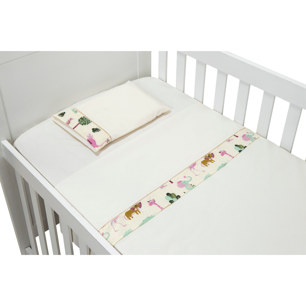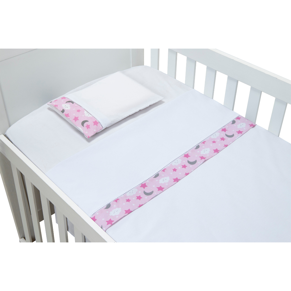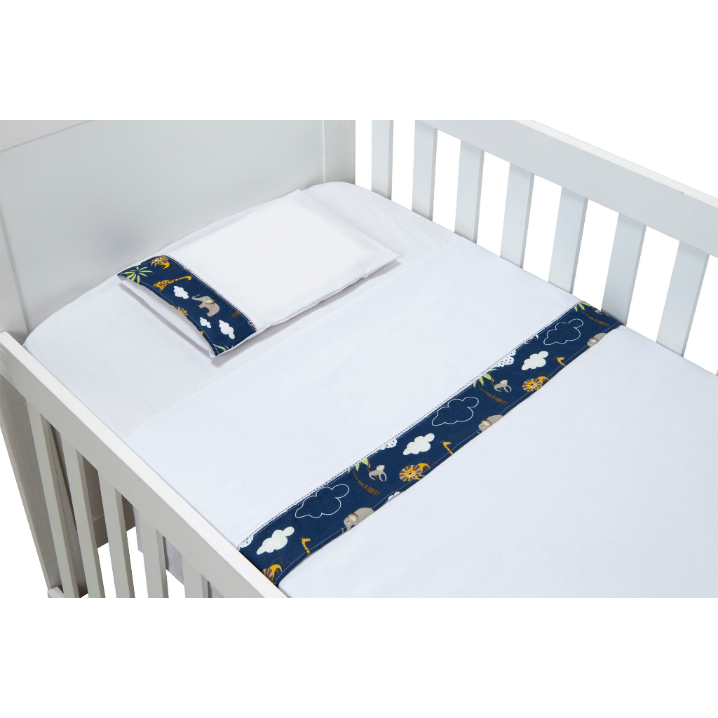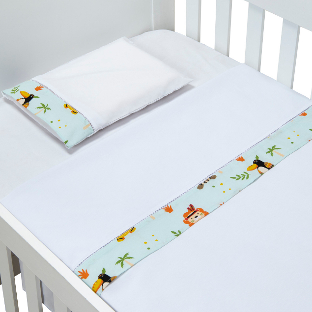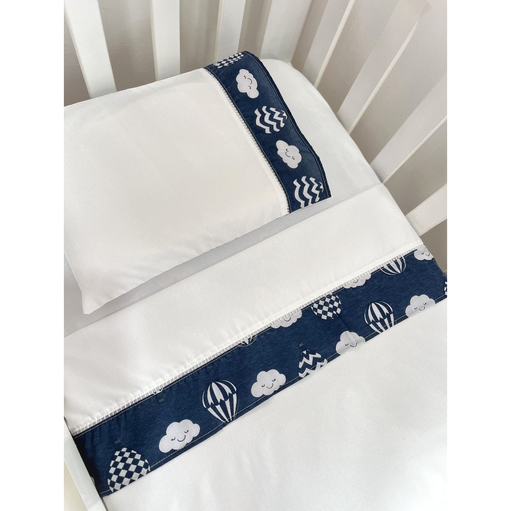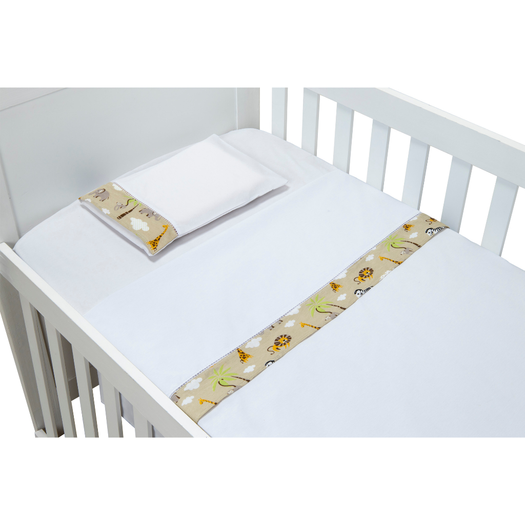 Jogo de Lençol de Mini Berço 03 pçs 100% Algodão com Elástico Vira Estampado Acabamento Ponto Palito