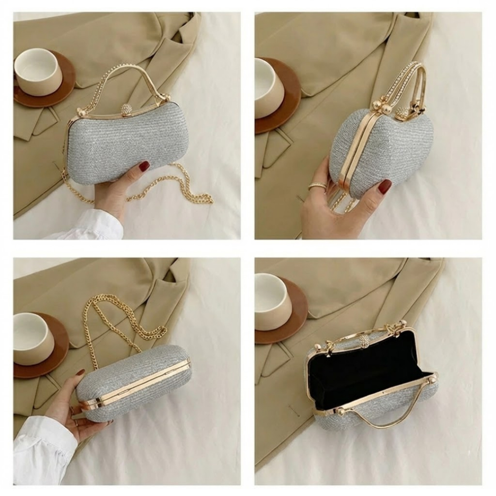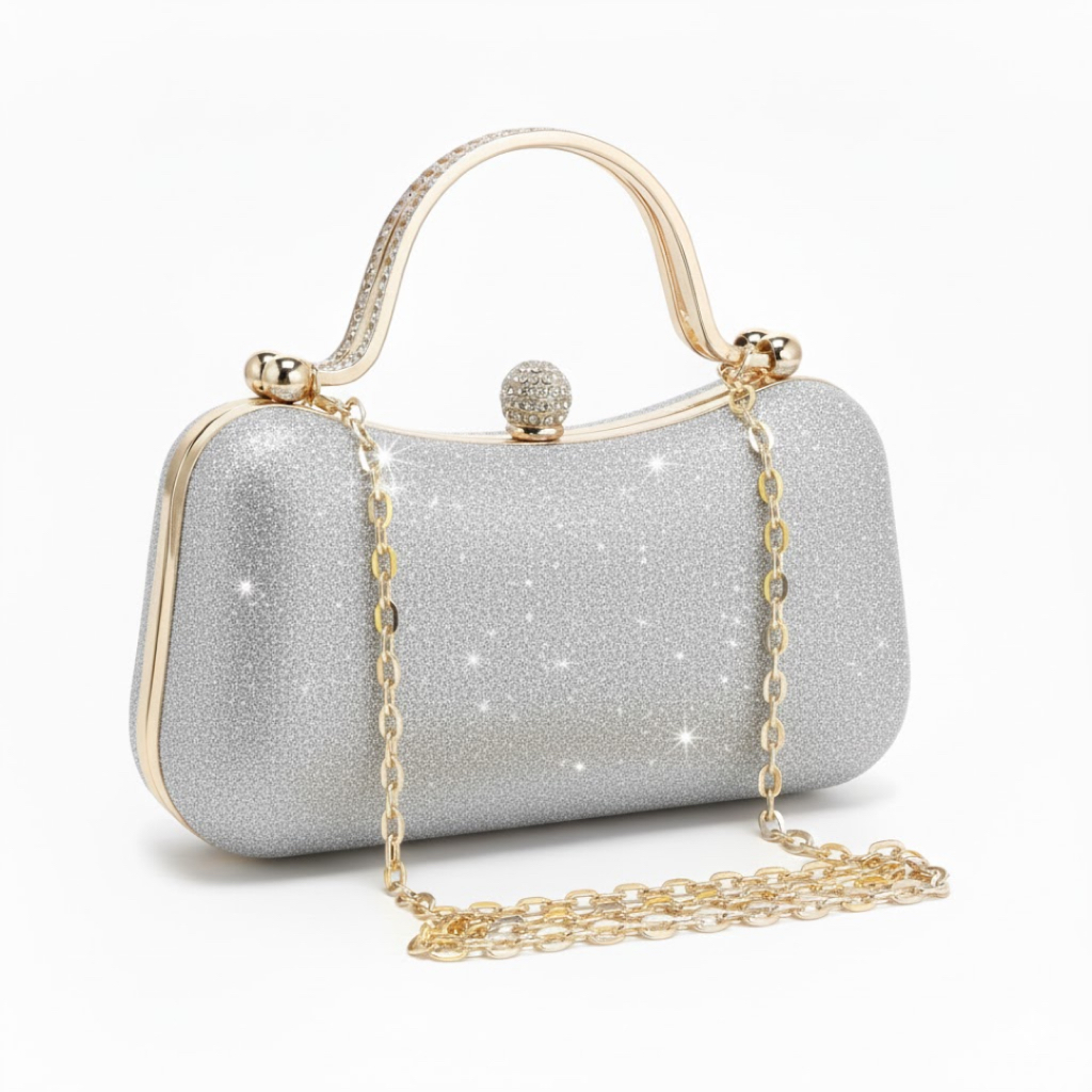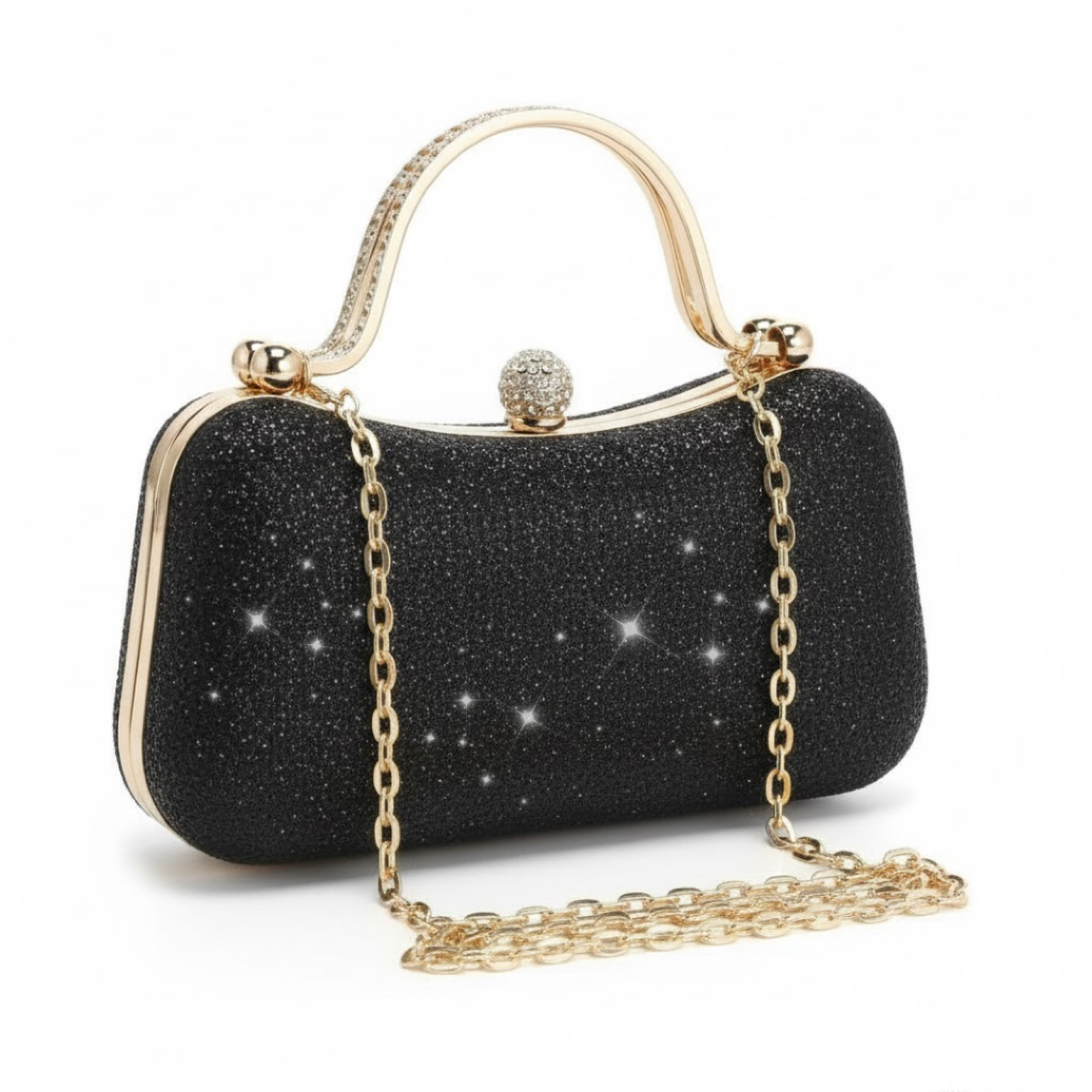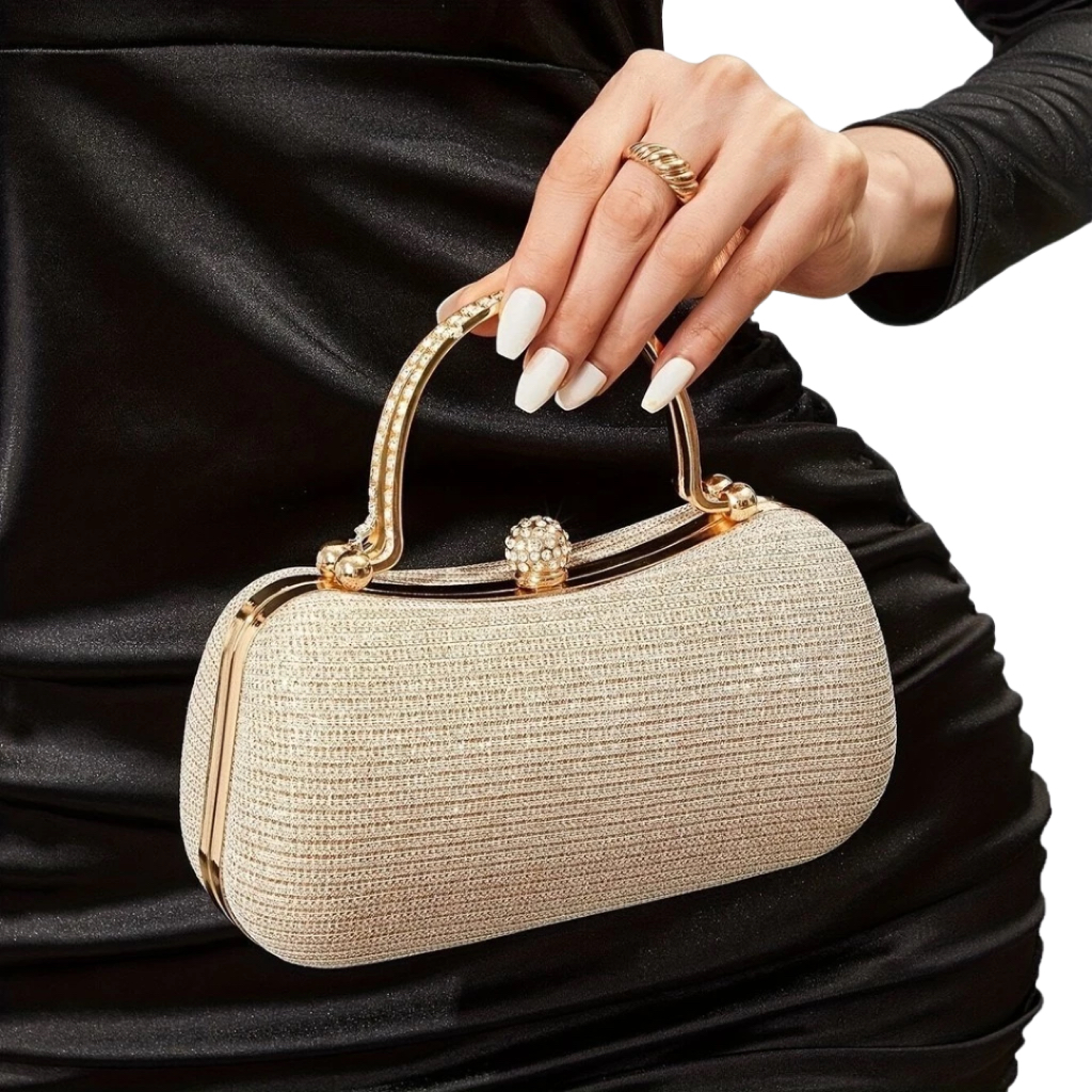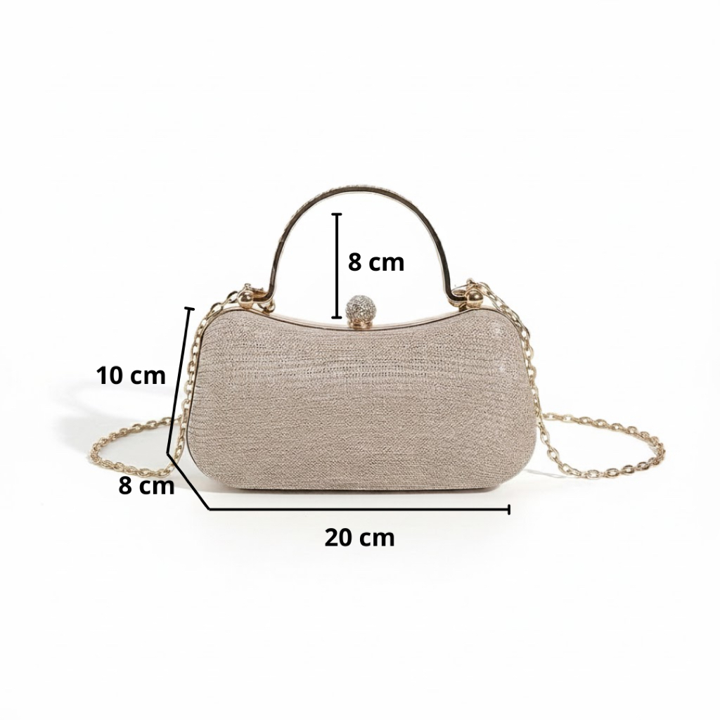 Bolsa Feminina de Festa Luxuosa Madrinha com Corrente e Strass | Casca Dura | Fecho Magnético