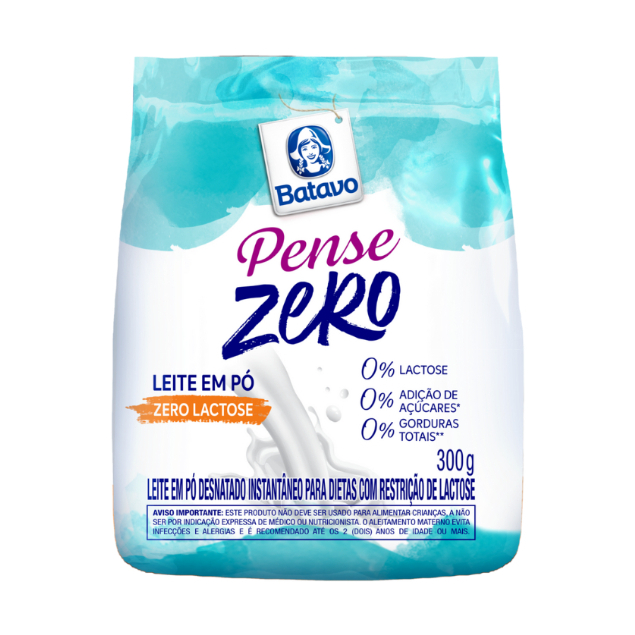 Leite em Pó Pense Zero Lactose Zero Açúcar Batavo 300g livre de lactose e 0% de gordura ideal para v