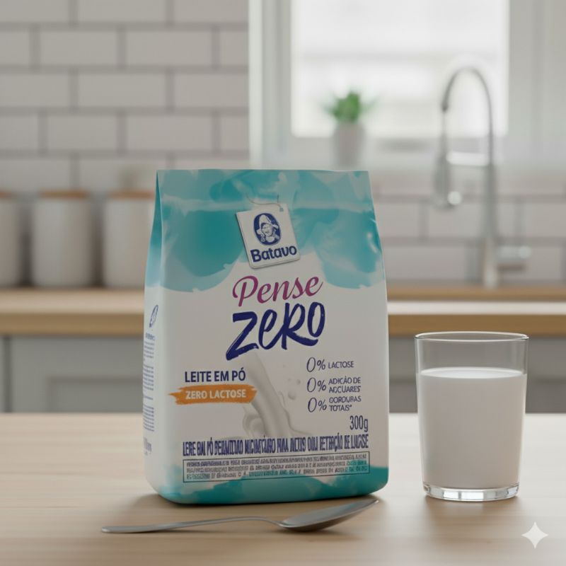 Kit 2 pacotes Leite em Pó Pense Zero Lactose Batavo, Zero adição de Açúcar 300g livre de lactose -Intolerância a Lactose