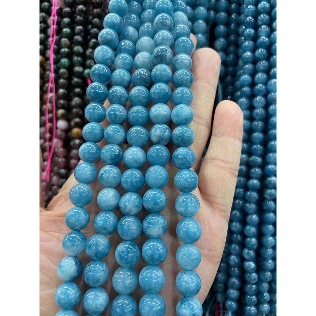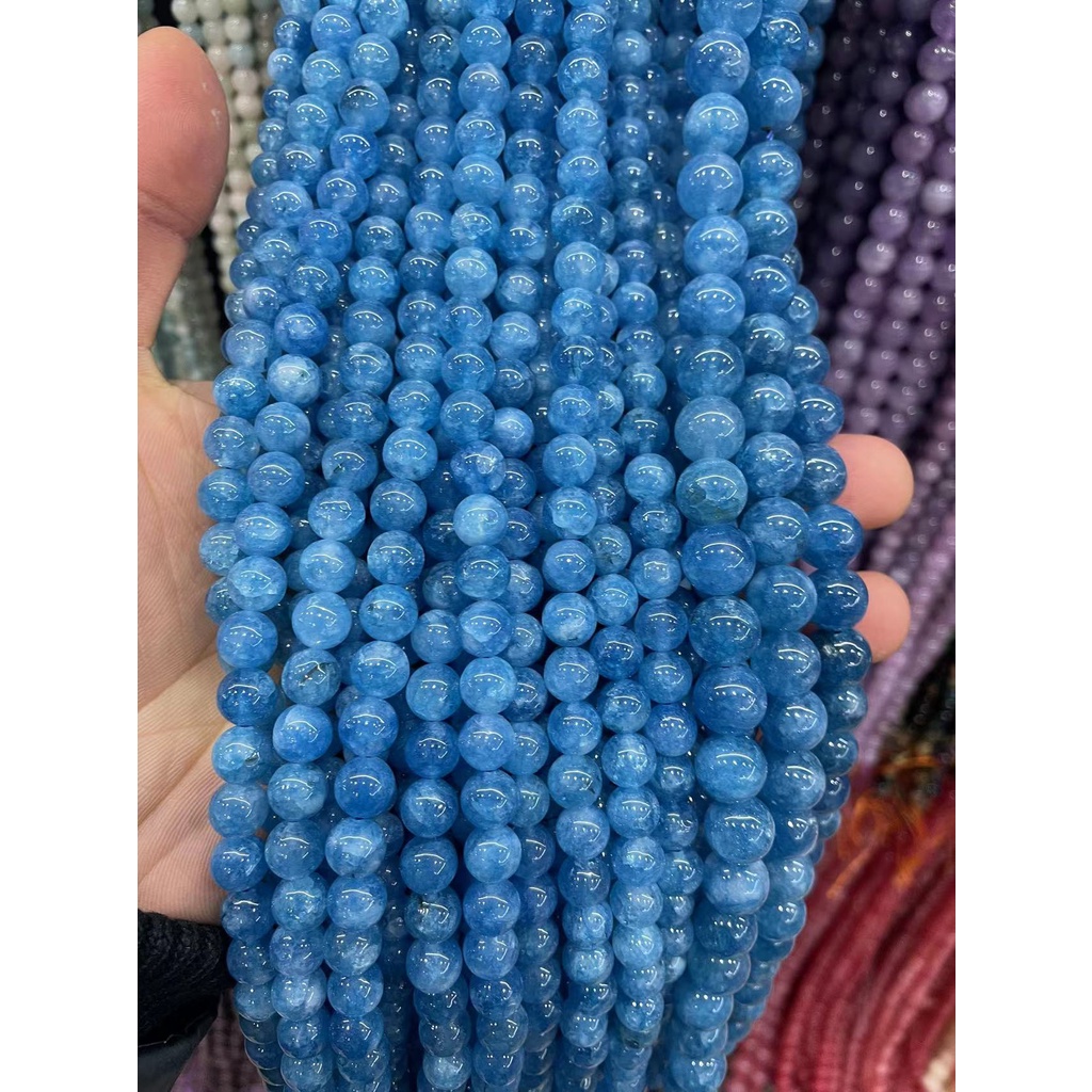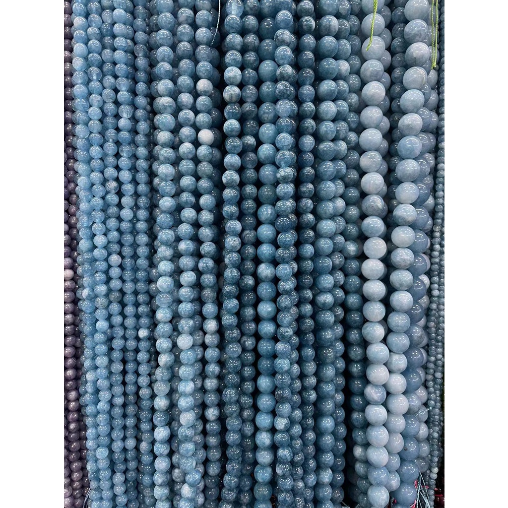 6/8/10mm Natural Aquamarino Pedra Contas Suave Rodada Soltos Spacer Beads Para Fazer Jóias DIY Colar Pulseira 15 "