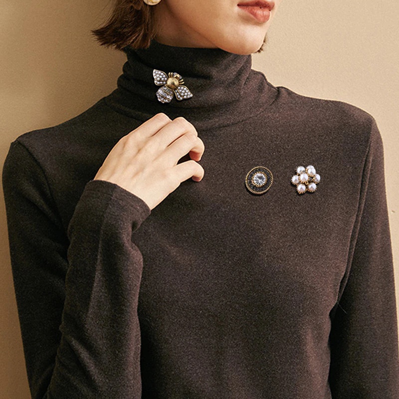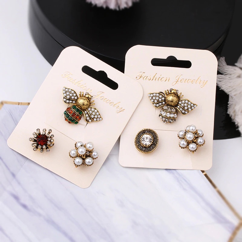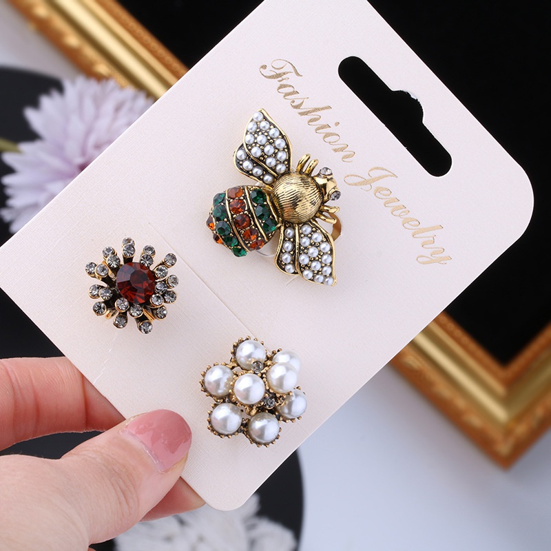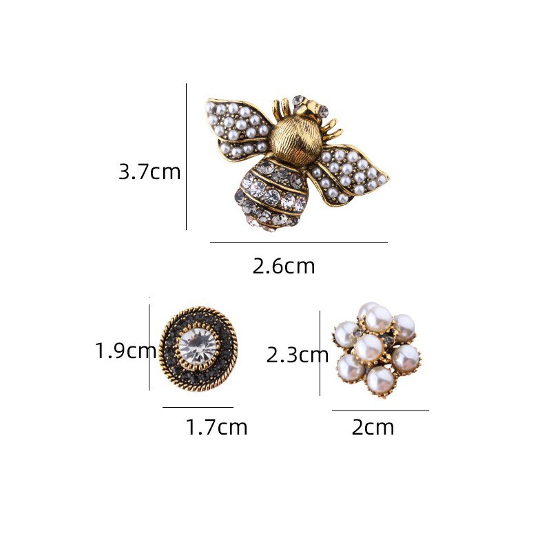 3 Pçs/set Pérolas Flor Broches De Segurança Pin Abelha Cuff Collar Studs Botão Da Camisa Do Vintage Ano Novo Designer De Jóias Presente