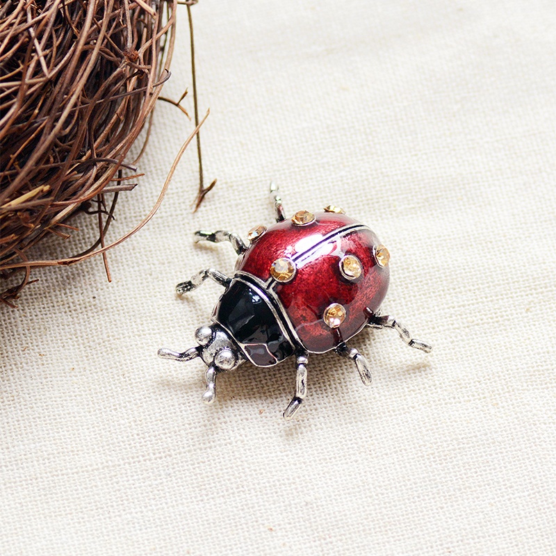 New Arrival Fashion Ladybugs Enamel Pin Vintage Rhinestone Insect Brooch JewelryMetal Brooches For Women Men Banquet Party Clothes Pins