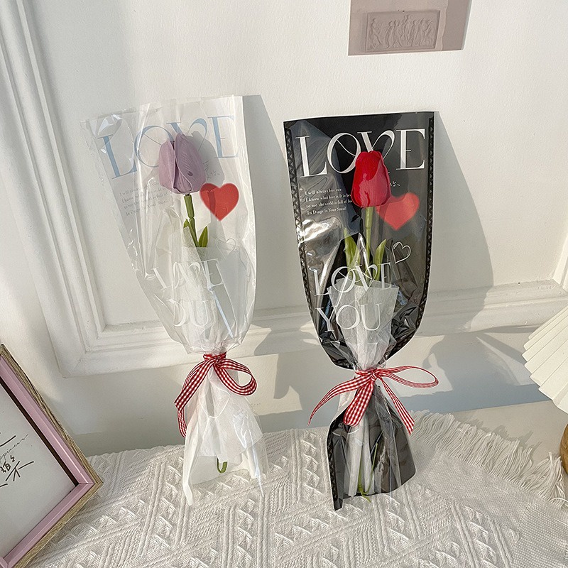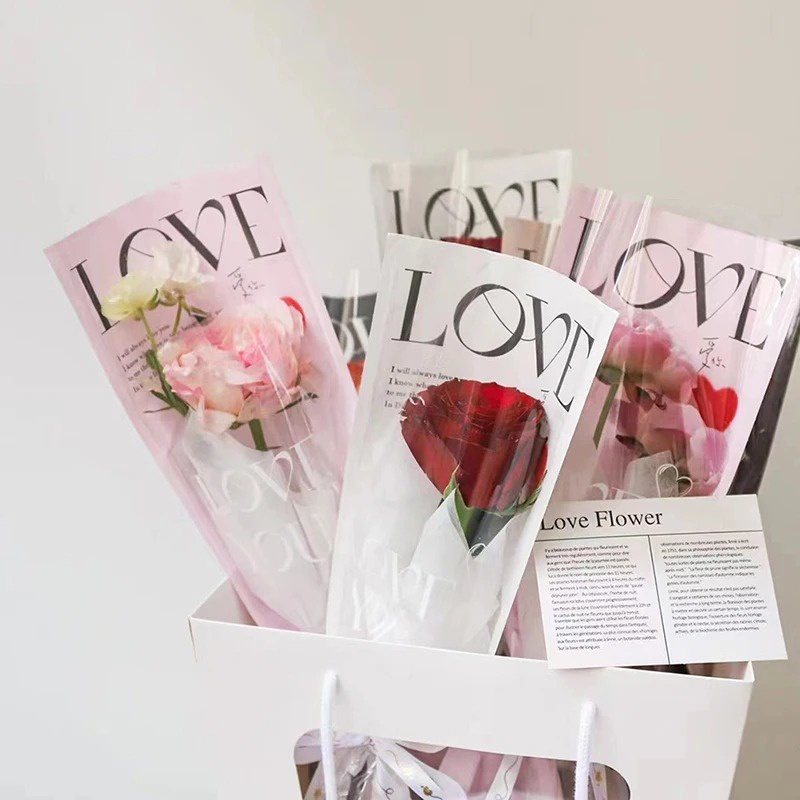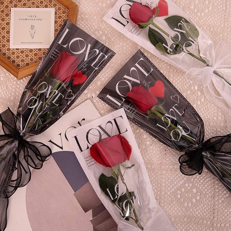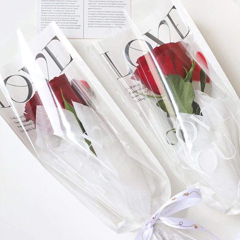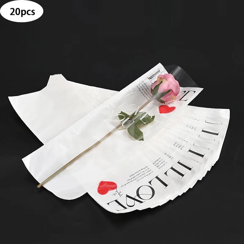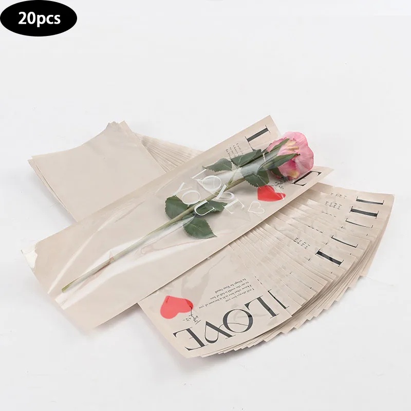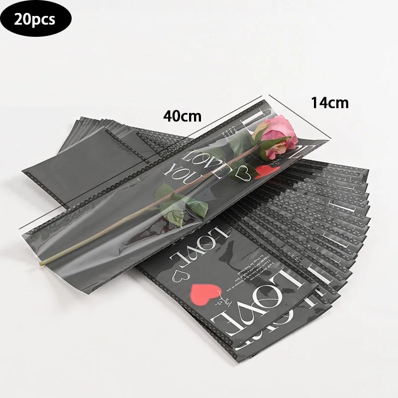 20pcs LOVE Sacos De Embalagem Rosa Transparente Florais Plásticos Um Saco Reto Para O Dia Dos Namorados , Casamento , Decorações De Aniversário