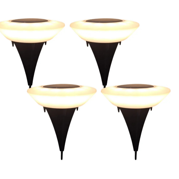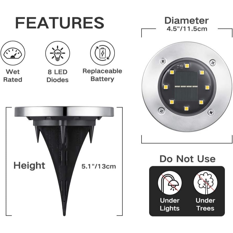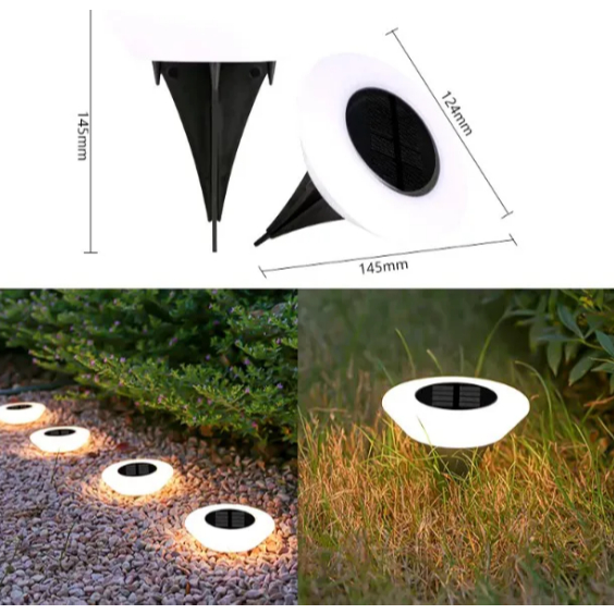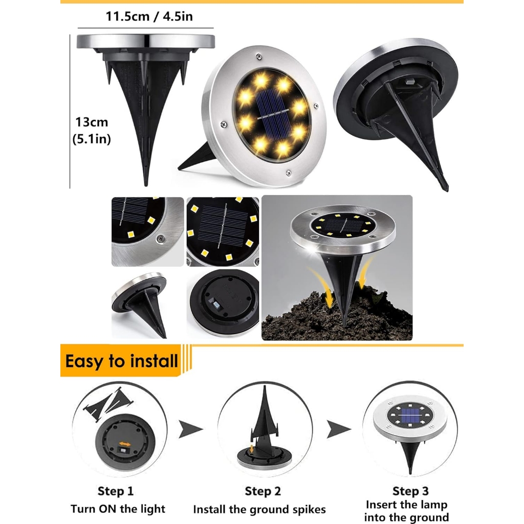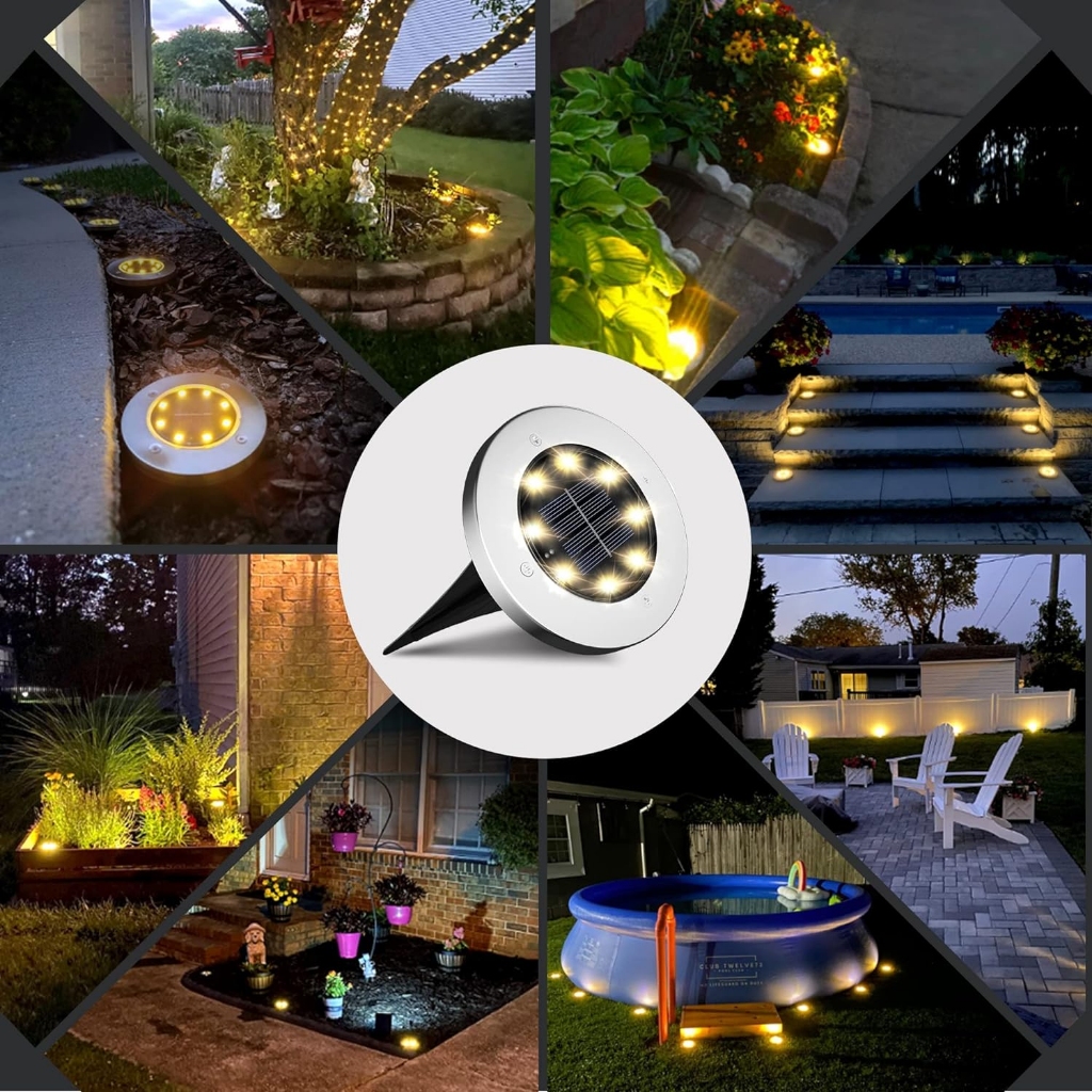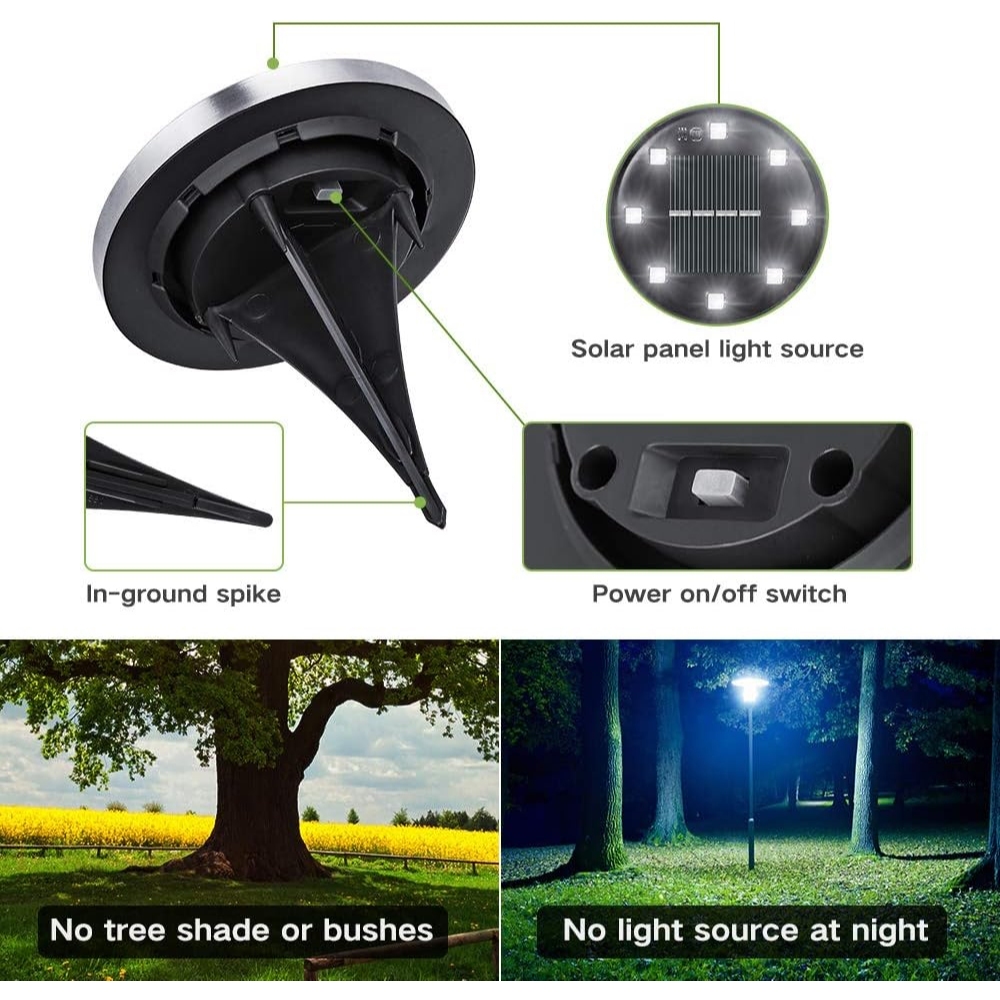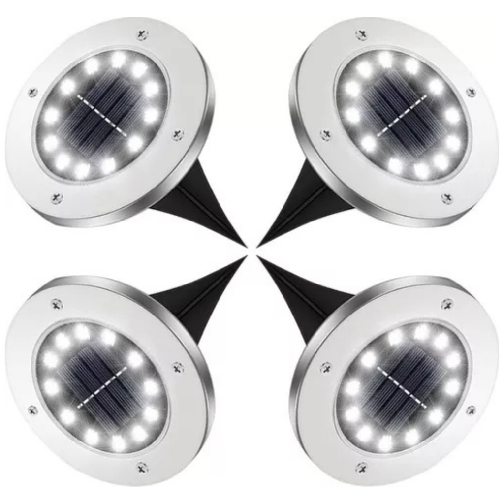 Kit Espeto jardim solar inox prova d'água disco spot grama chão área externa 8 12 ou 14 LEDs