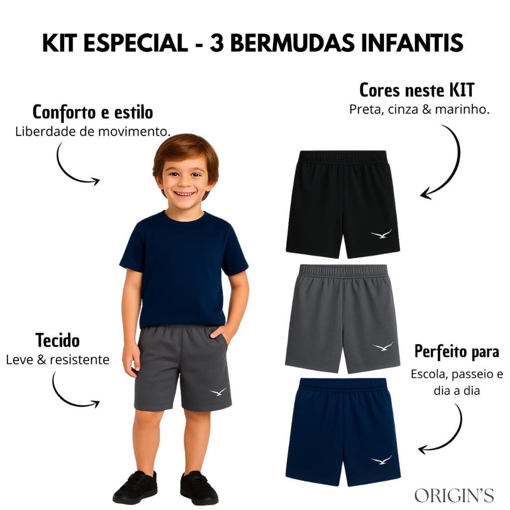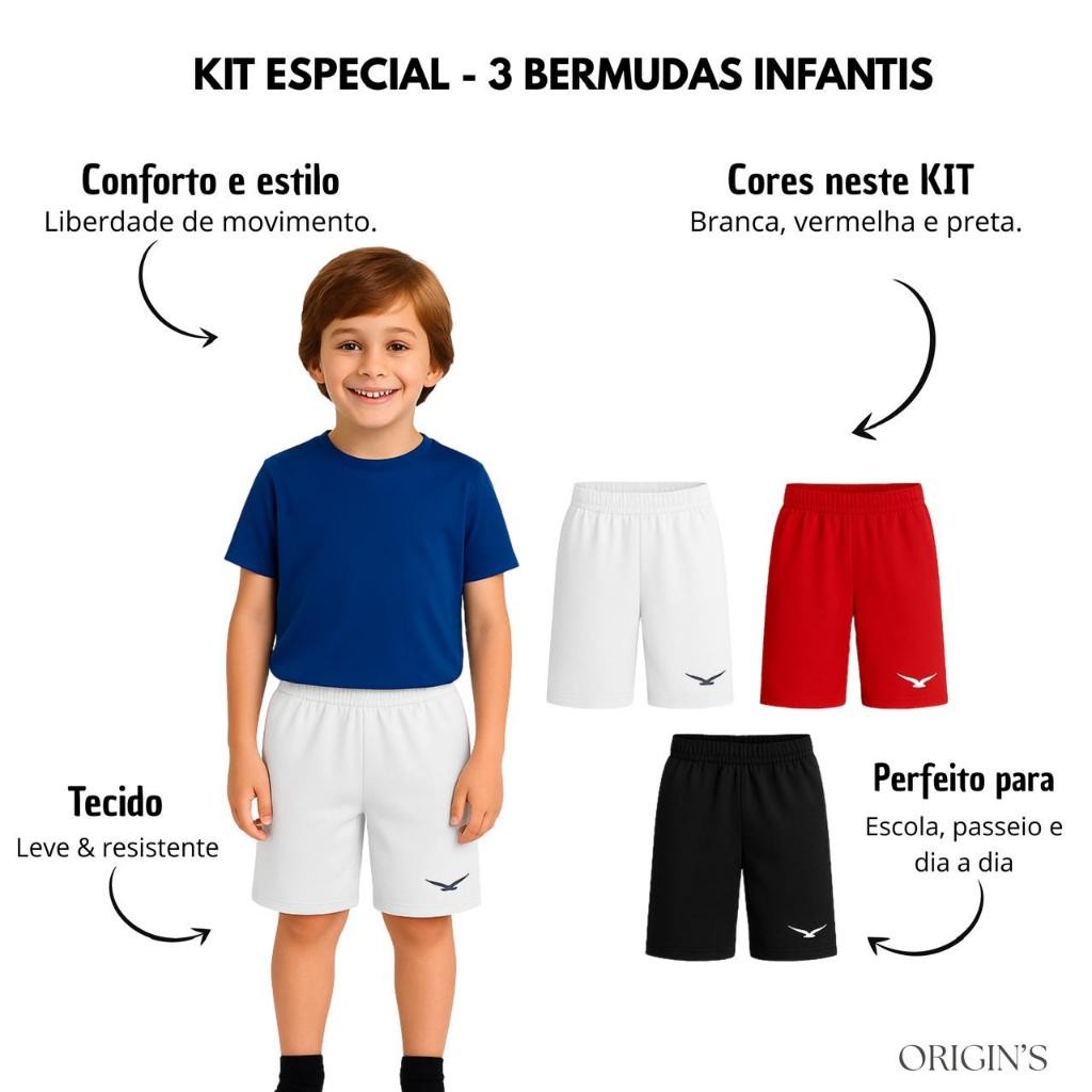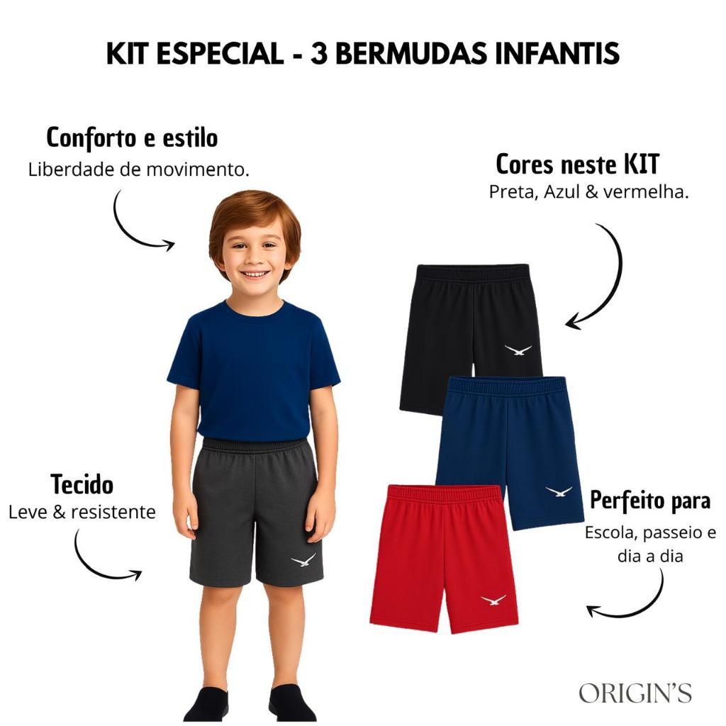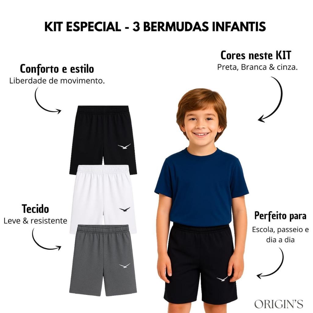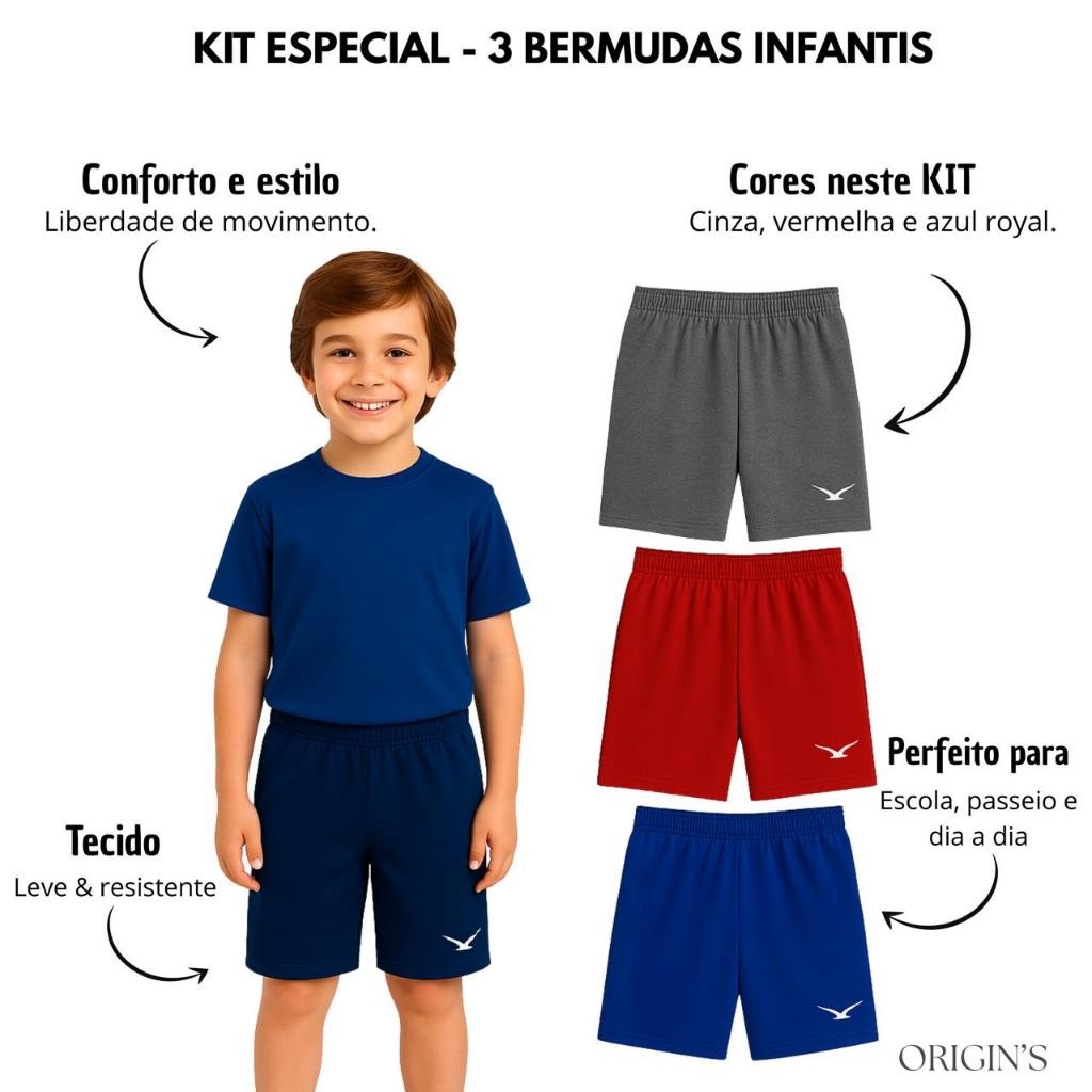 Kit 3 Bermudas Infantil Com Elastico e Cordão de 4 a 6 anos Direto da Fabrica
