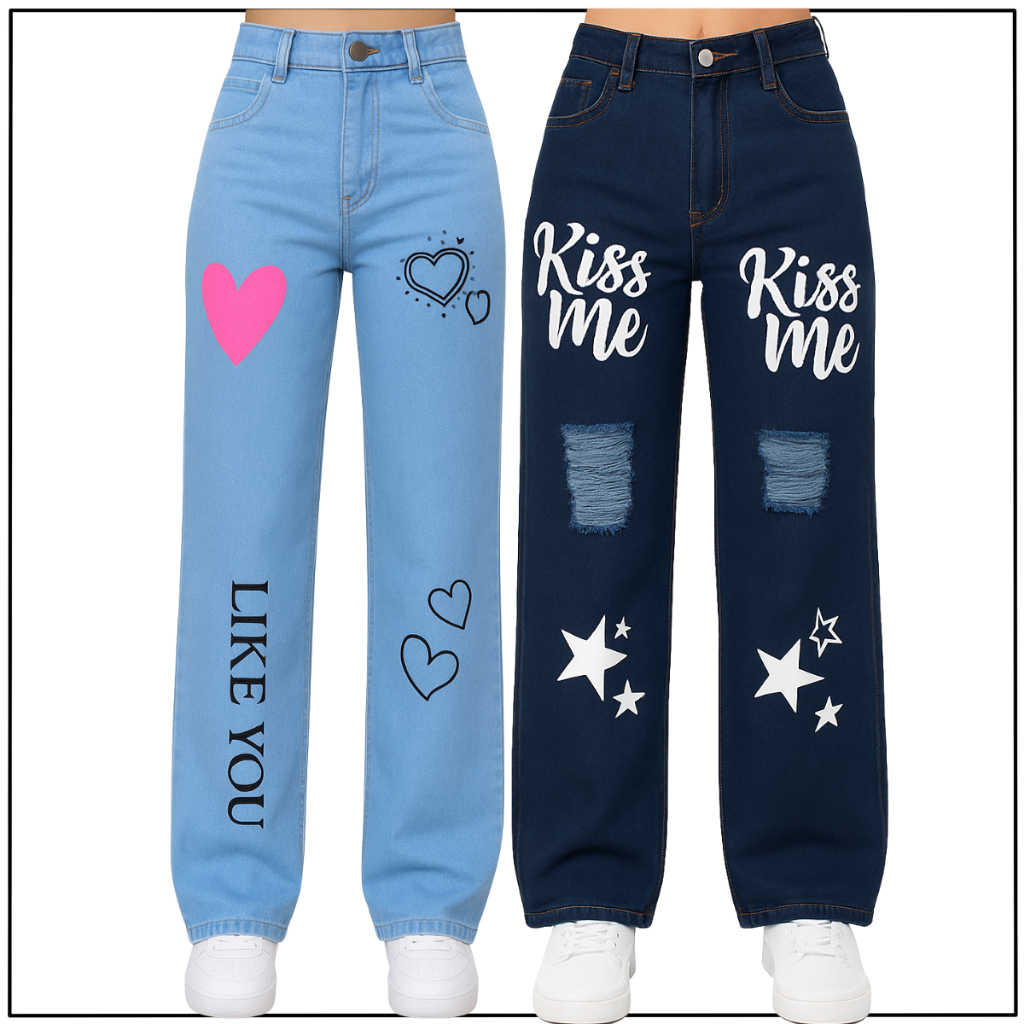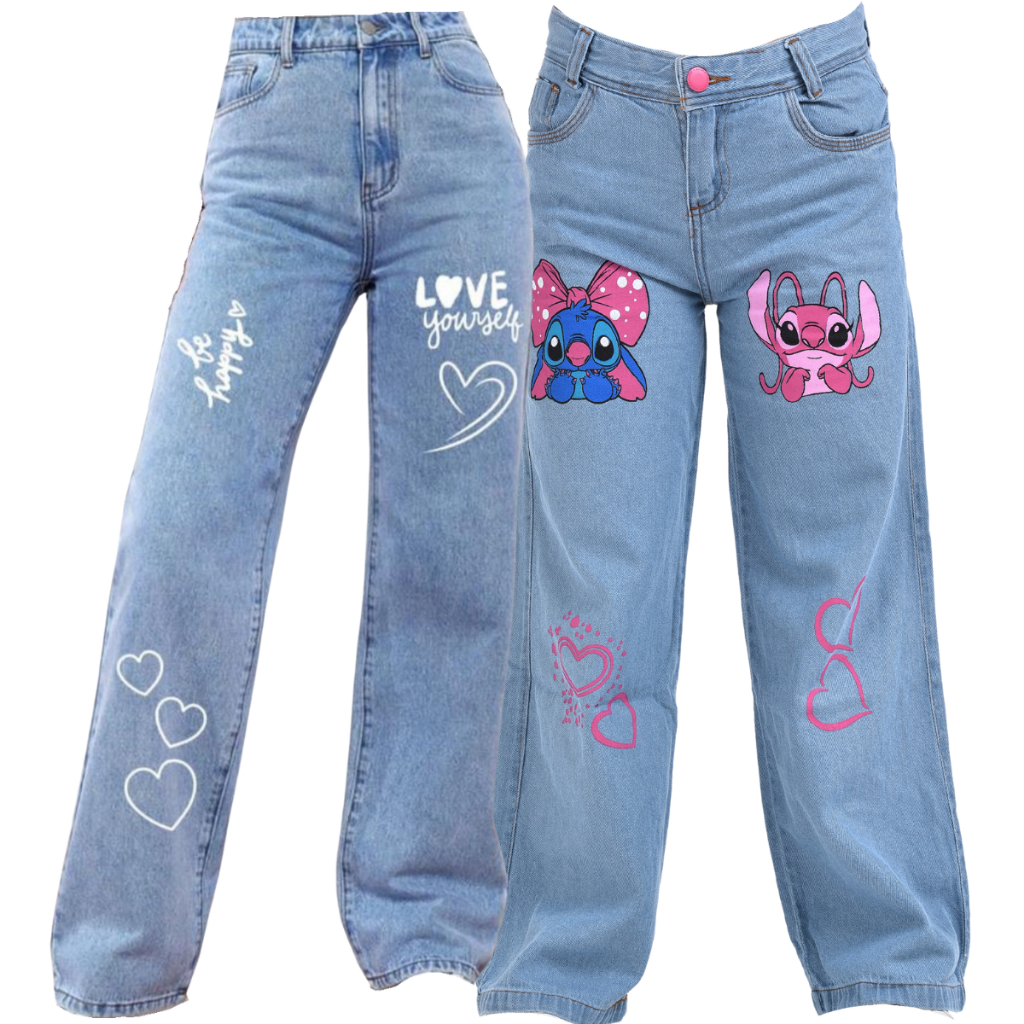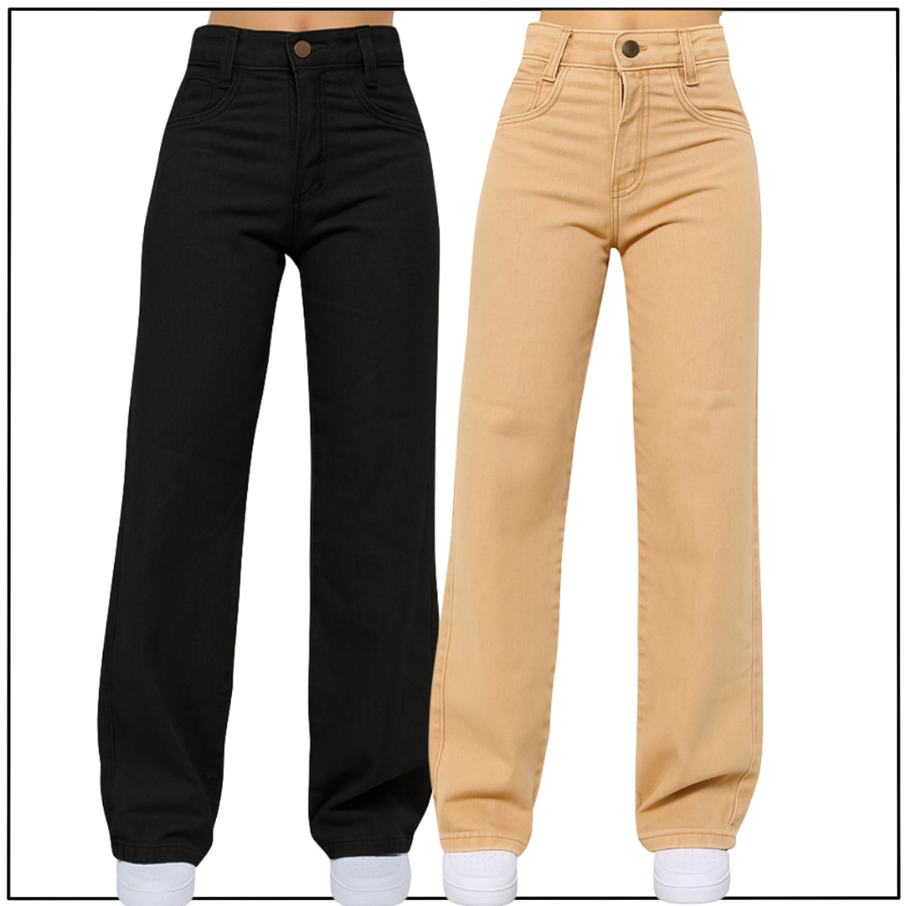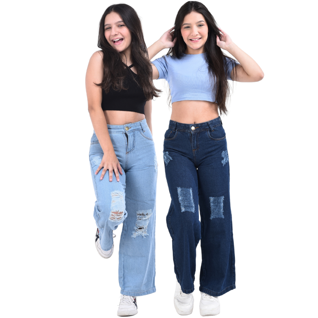 Kit 2 Calças Jeans Wide Leg Menina Infantil e Juvenil