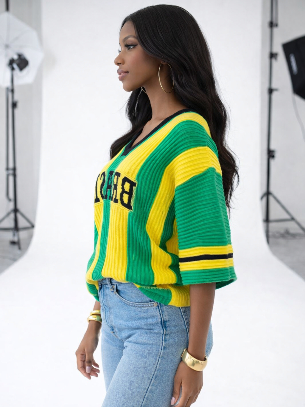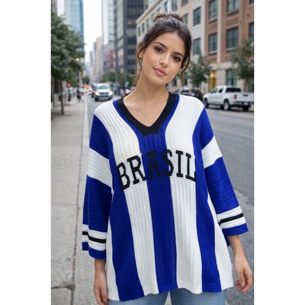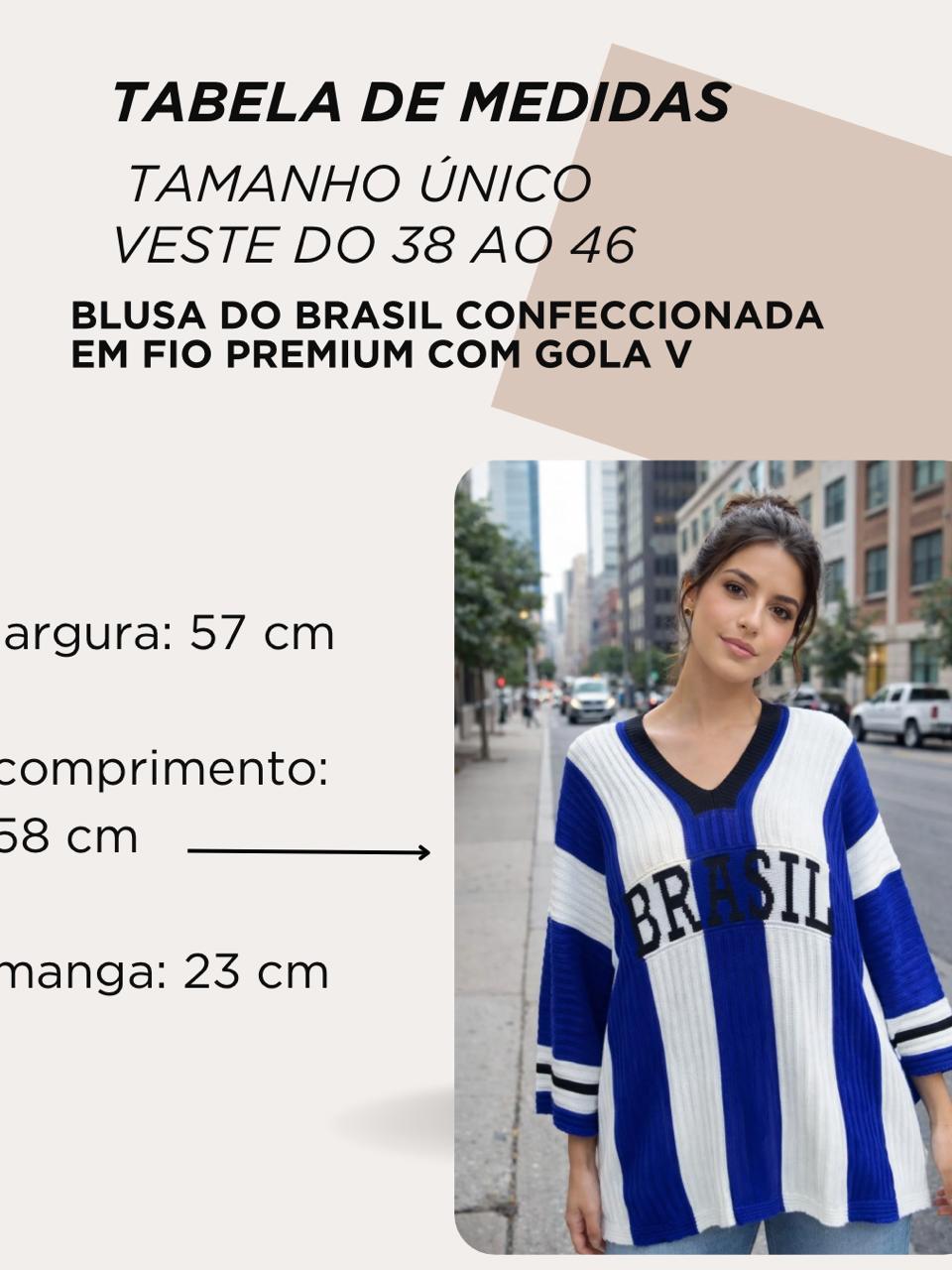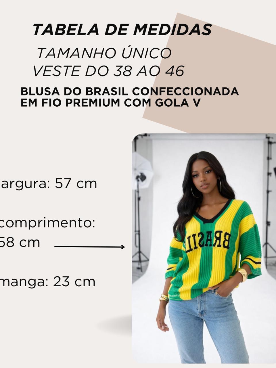 Blusa do Brasil Feminina Tricot Estilosa Elegante Tendência Copa Tricô