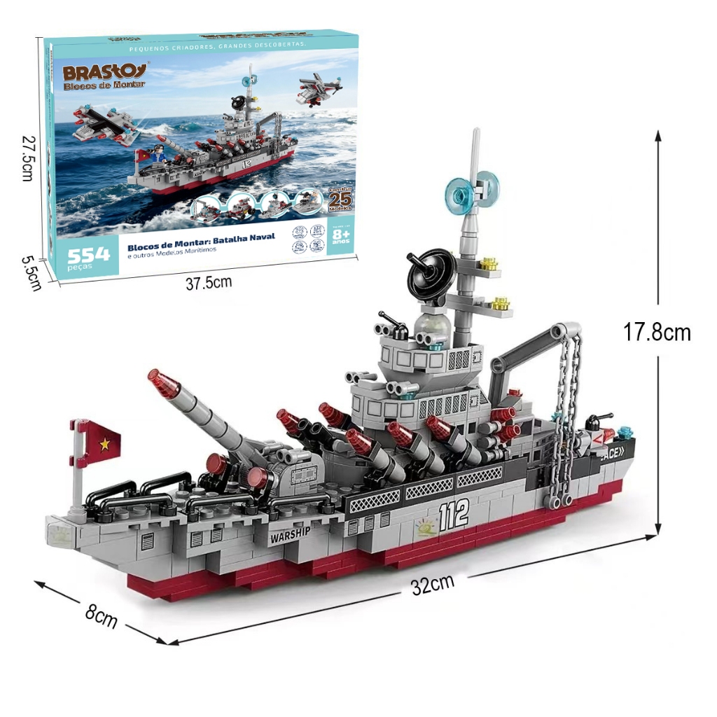 BRASTOY Embarcação Guerra Blocos Construção De Menino De Brinquedo 554 peças