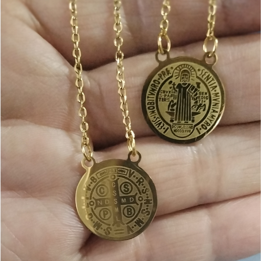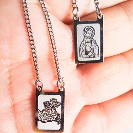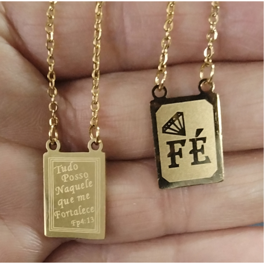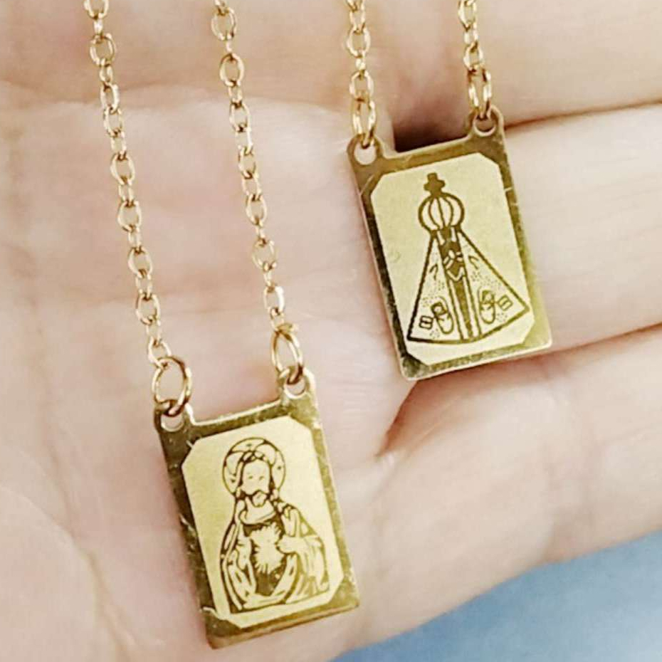 Escapulário Nossa Senhora Aparecida e Coração de Jesus em Prata de Aço Inox 316L dourado/prata Colar Sagrado
