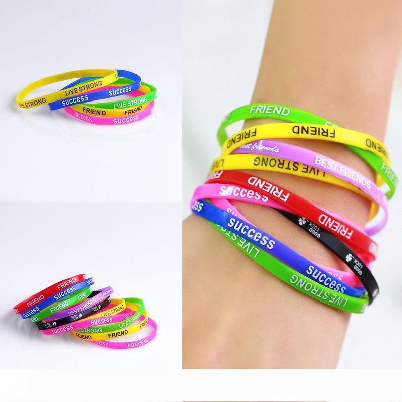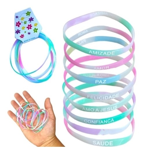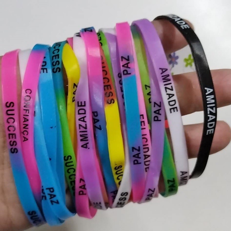 Kit 18/36/72 Pulseira de silicones com palavras motivacionais da amizade coloridas e sortidas /sem JESUS