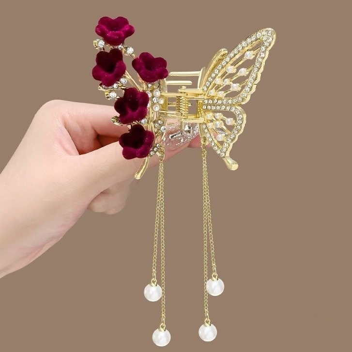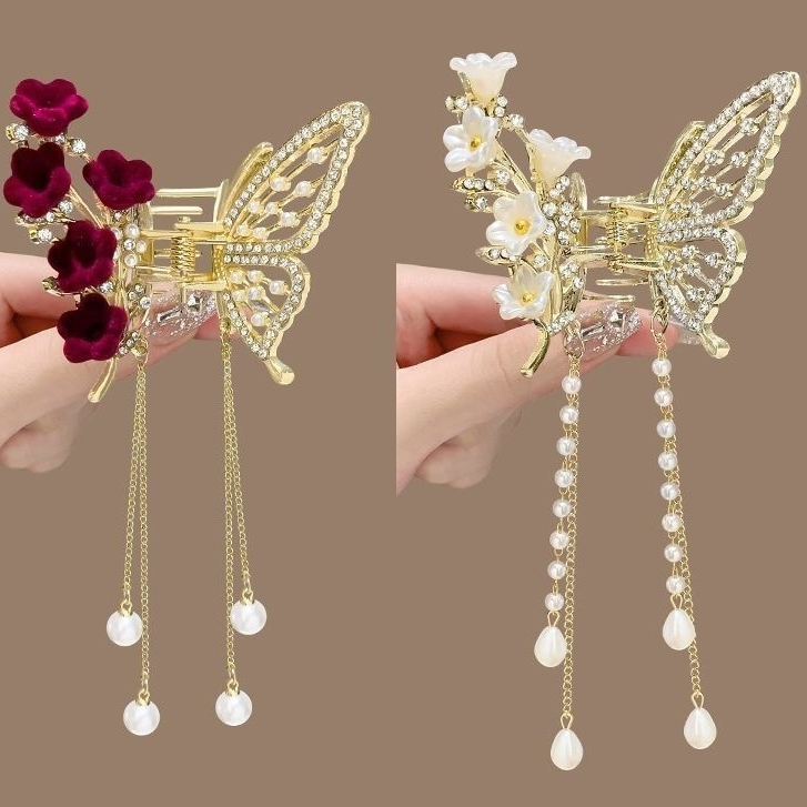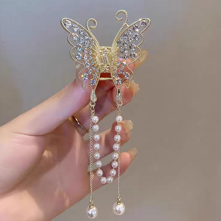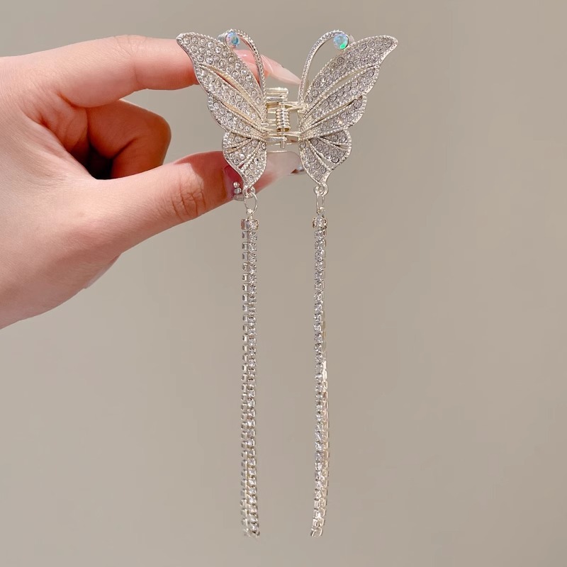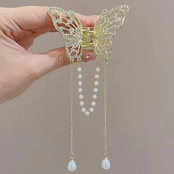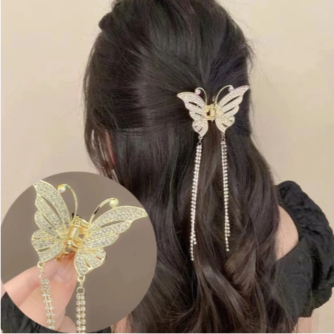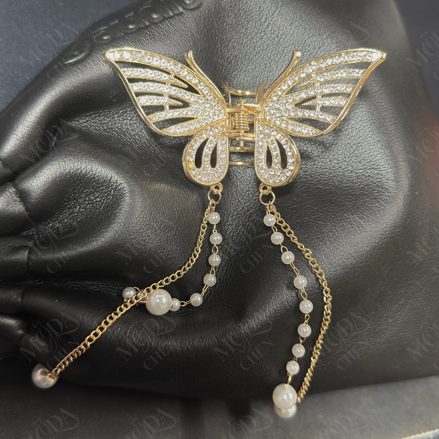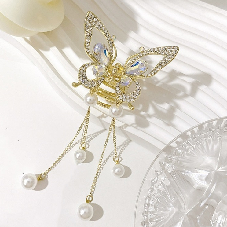 Presilha De Cabelo Feminina Dourada / Prata Com Borla De Borboleta Em Liga Piranha