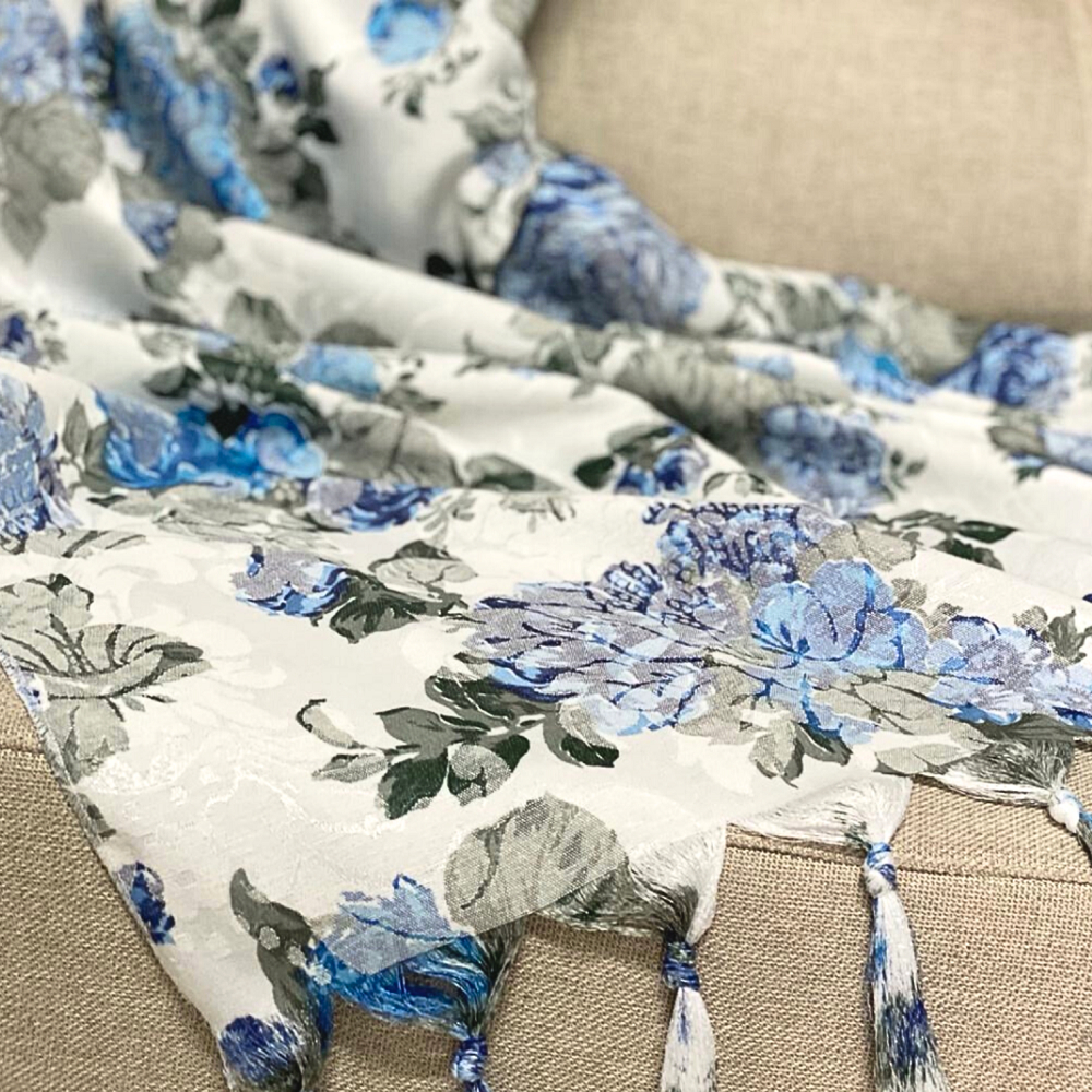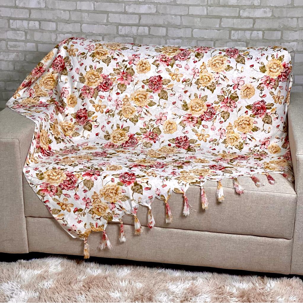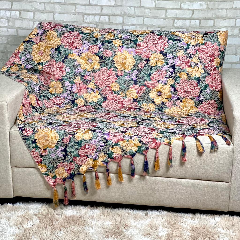 Manta Xale de Sofá e Cama Luxo Colcha Jacquard Floral Estampado