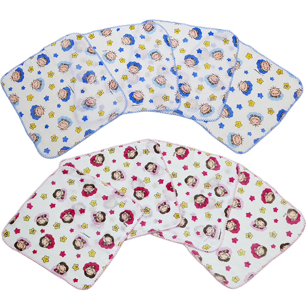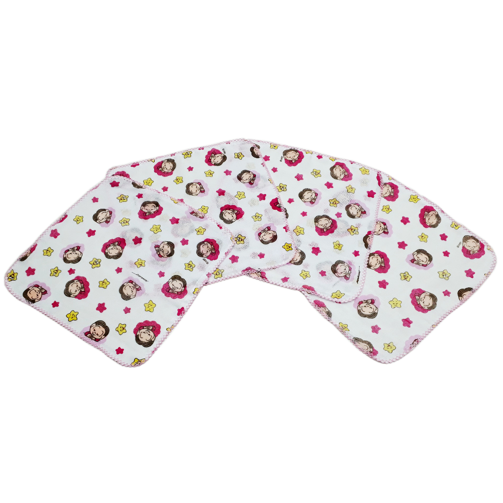 Kit 5 Fralda De Boca Bebê Turma Da Mônica e Cebolinha Bebê Pano de Boca Babete 33x33cm Com Crochê