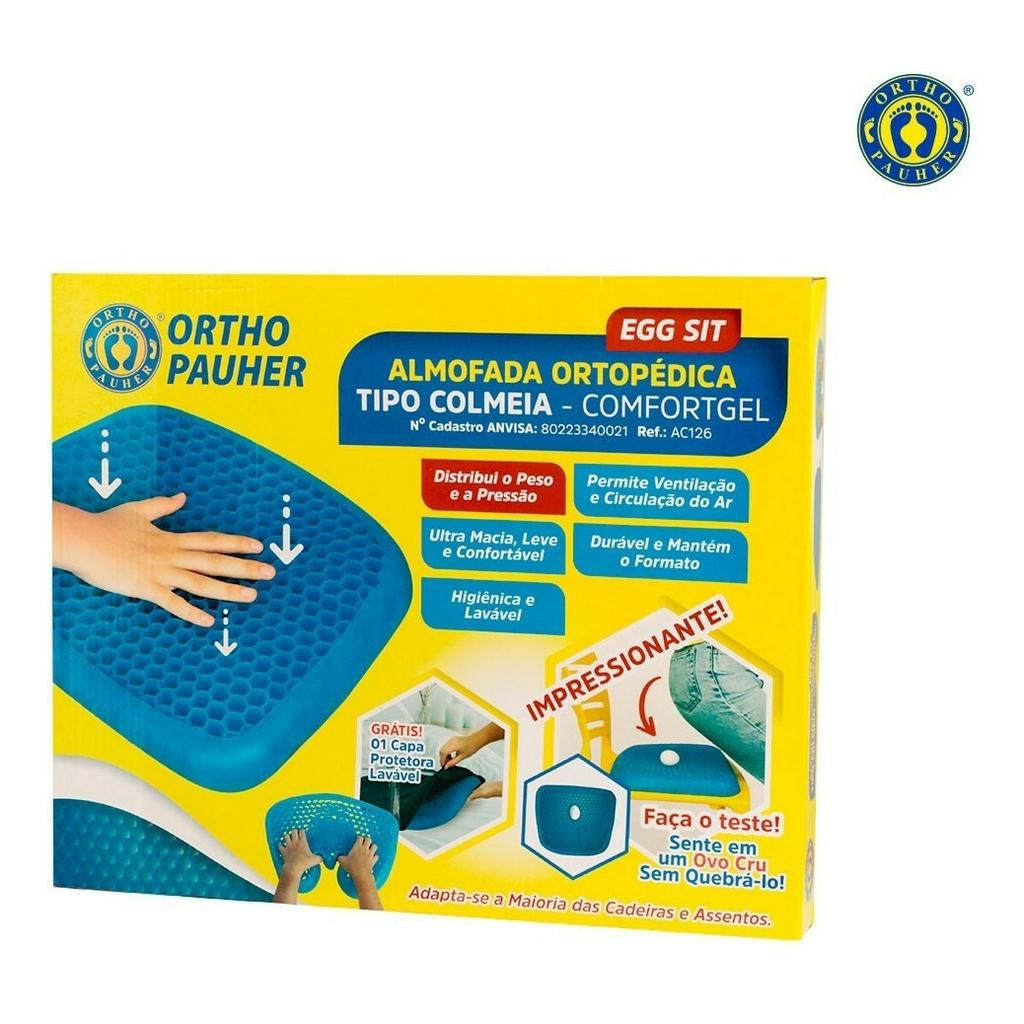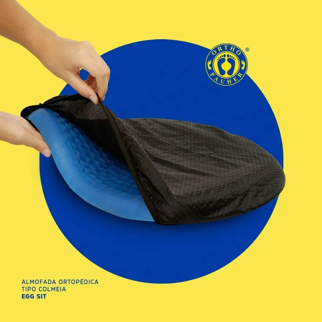 Almofada Ortopédica Egg Sit Ortho Pauher C/ Capa Assento Gel Anti Escara Colmeia Favo de Mel Cóccix em Silicone - Uso no Carro, Cadeira de Rodas e Assentos em Geral