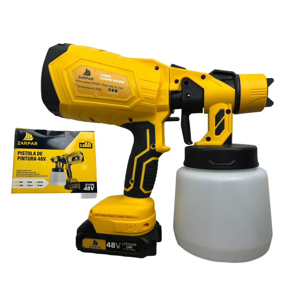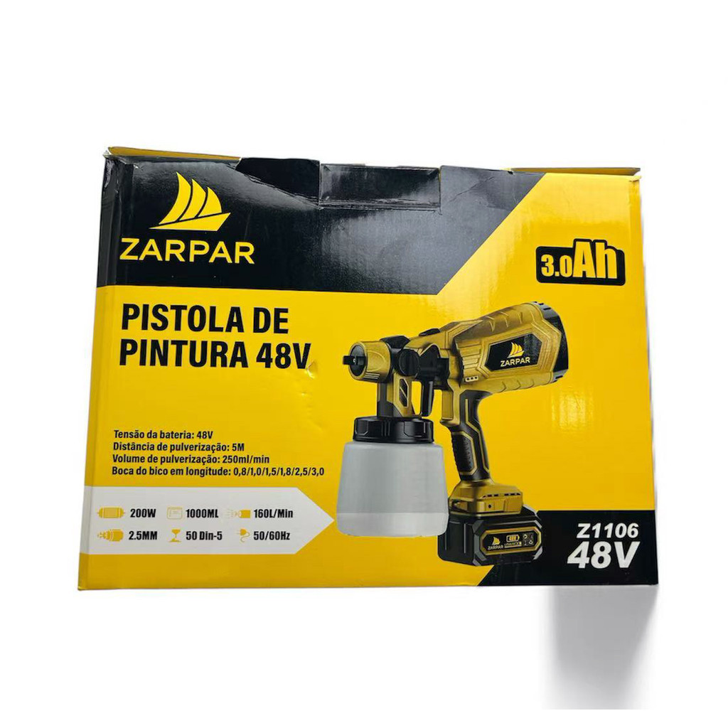 200W Pistola Pulverizadora de Tinta 48V Sem Fio com 2 Baterias 1000ml Elétrica Spray Portátil zarpar