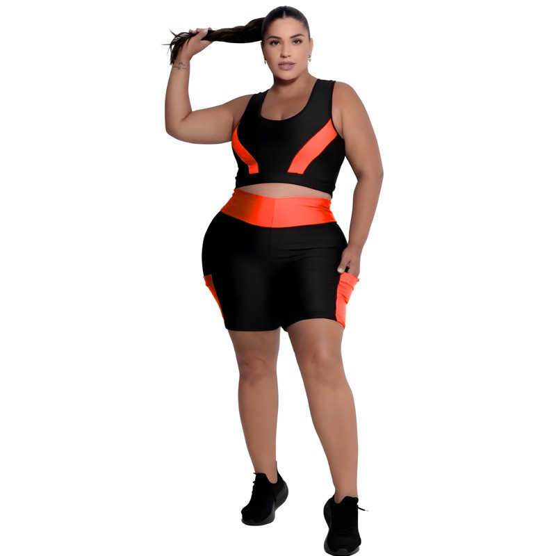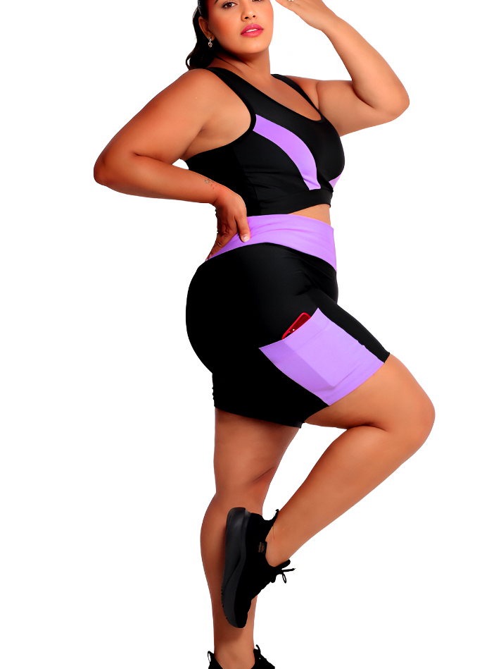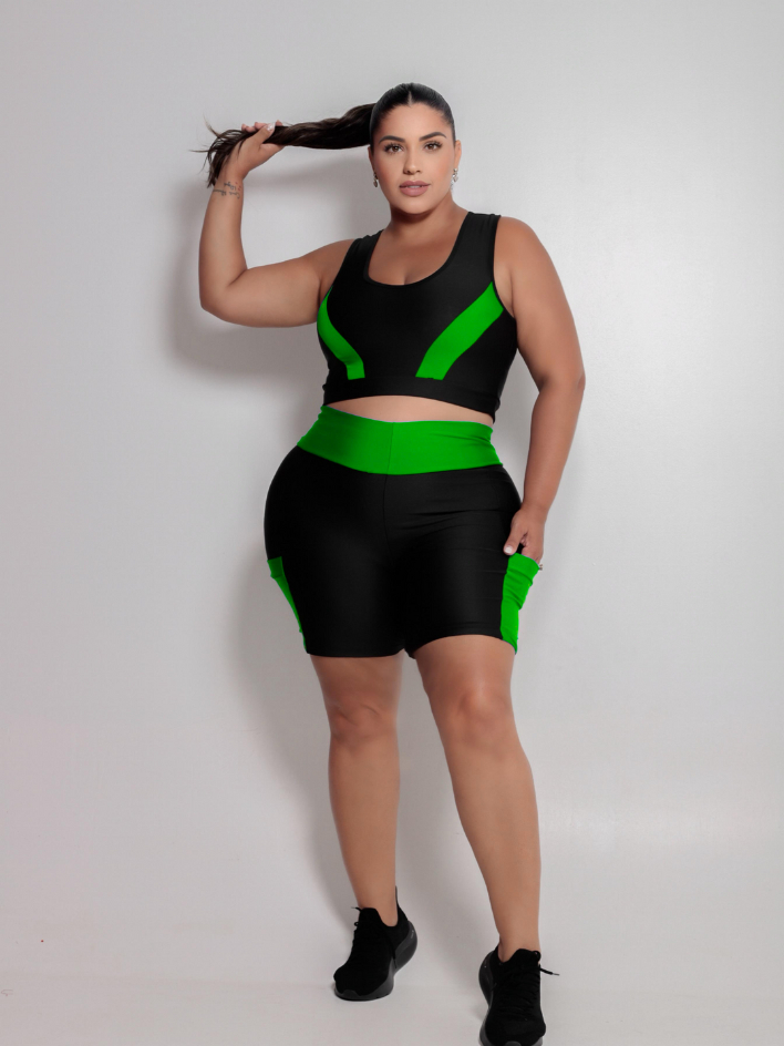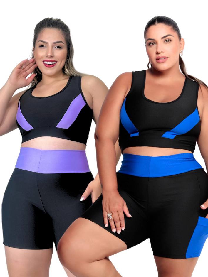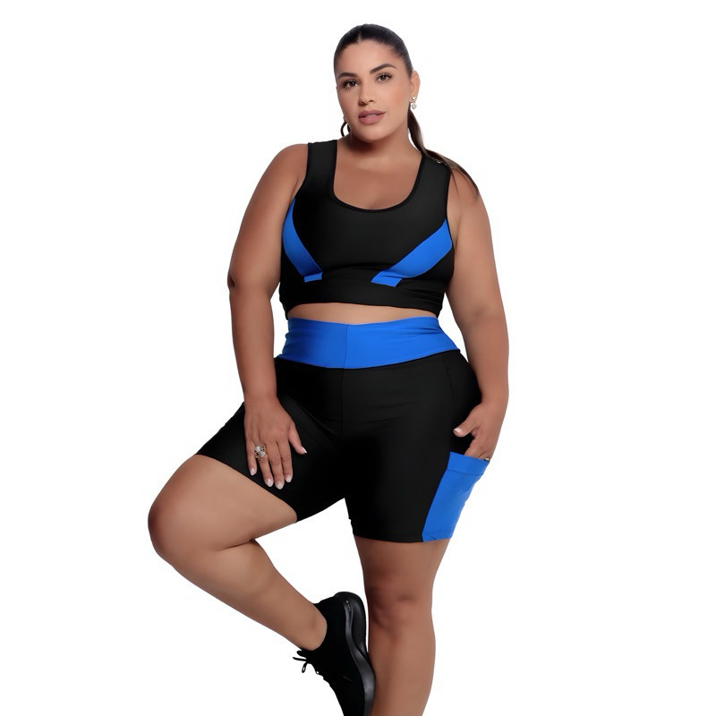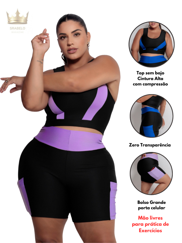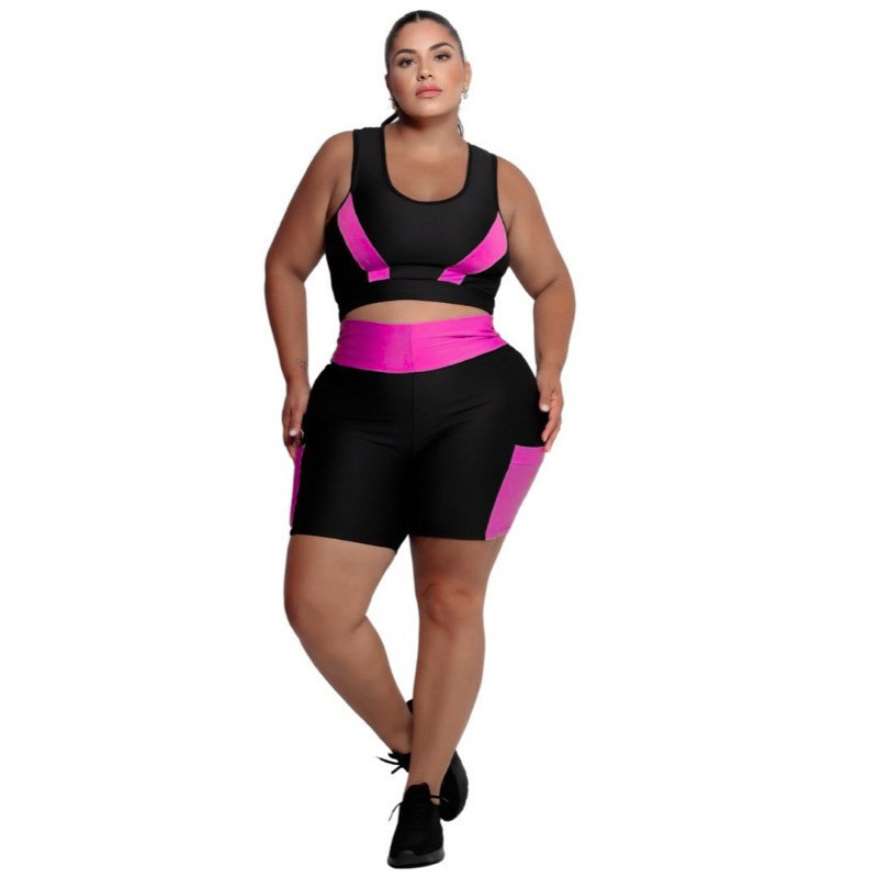 Conjunto Fitness Feminino Short com bolso + Top alta sustentação Plus Size G ao EXGG Modelo Curves