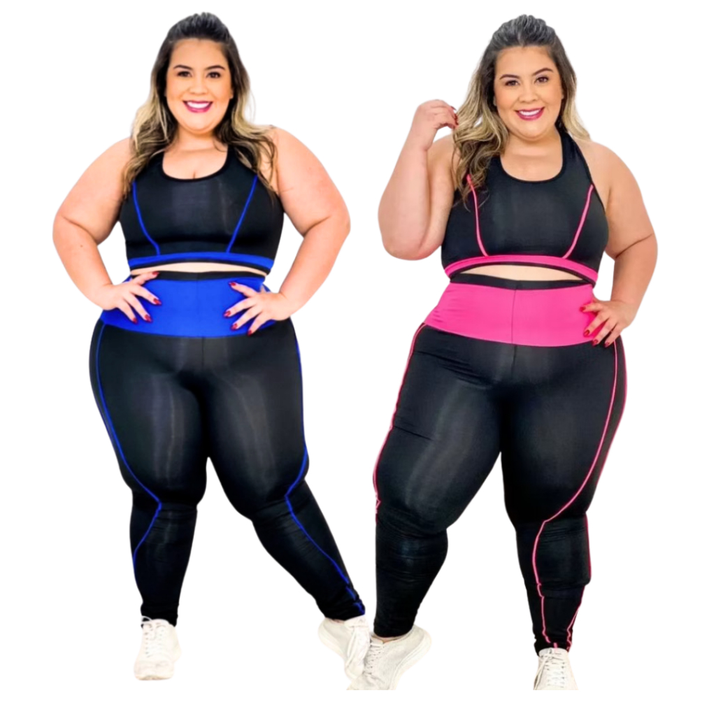 Kit 2 conjuntos fitness Plus size e Slim top + calça GG ao EXGG Roupa de academia