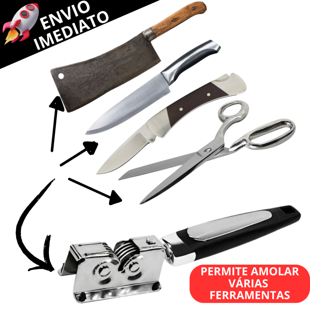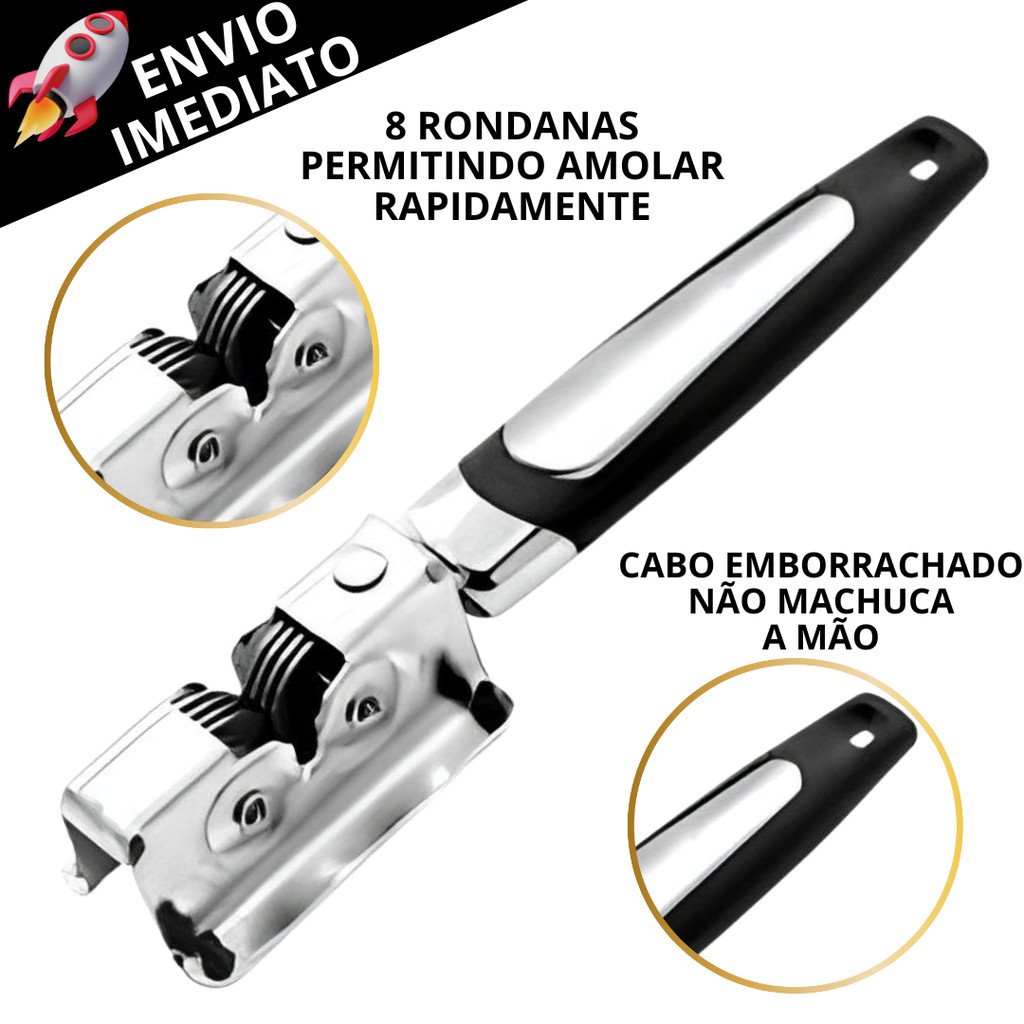 Kit 2 Afiador Amolador de Facas Tesouras Profissional Manual em Inox Resistente Prático