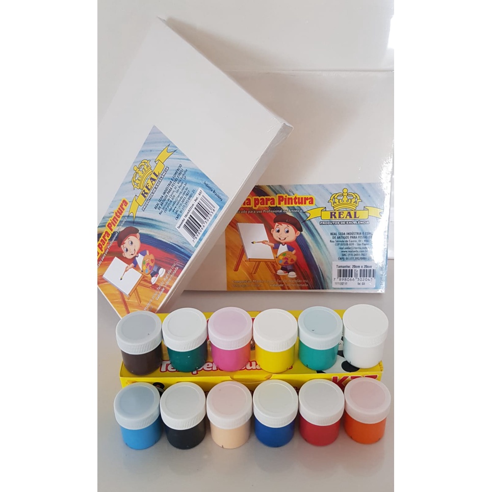 KIT PINTURA - 2 TELAS PARA PINTURA 16X22cm + 12 TINTA GUACHE