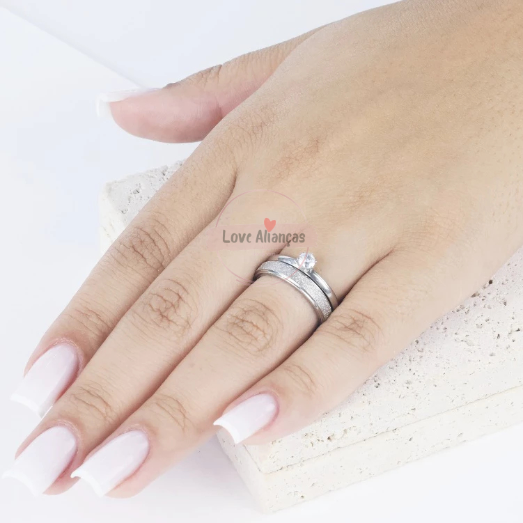 Par de Alianças de Namoro Anatômica diamantadas finas 4MM prata Anel Solitários e Caixinha de Veludo
