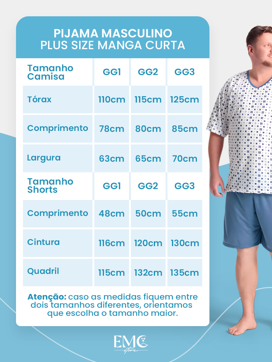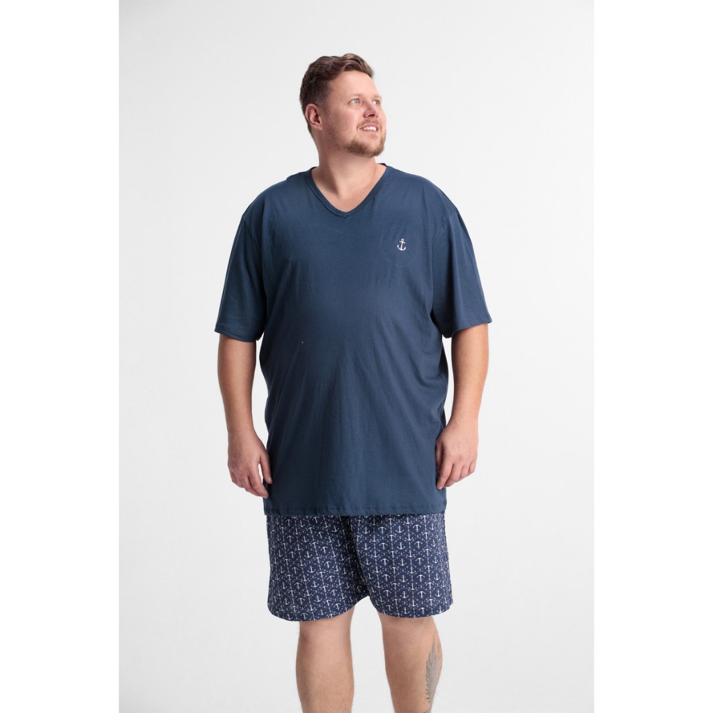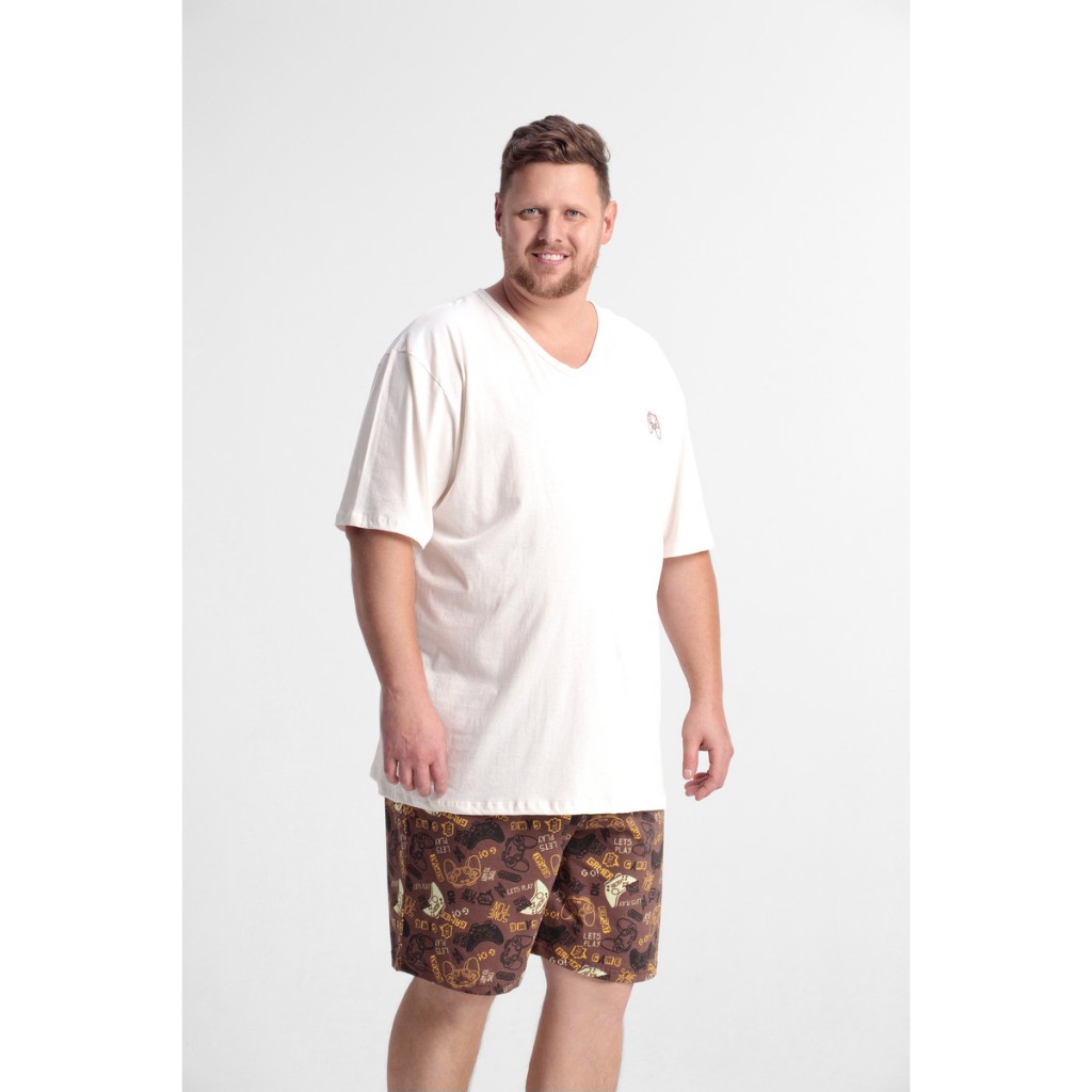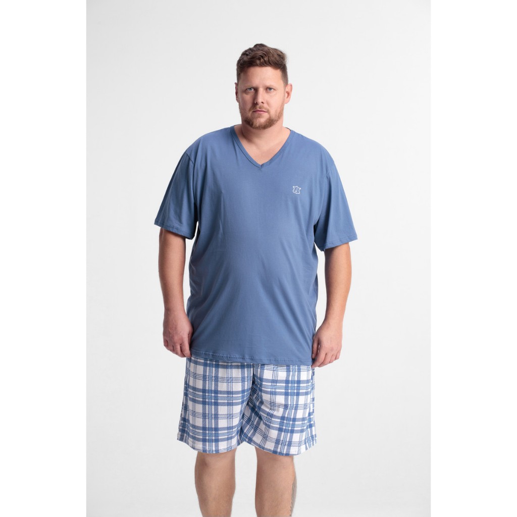 Pijama Masculino Camiseta E Shorts 100% Algodão Plus Size