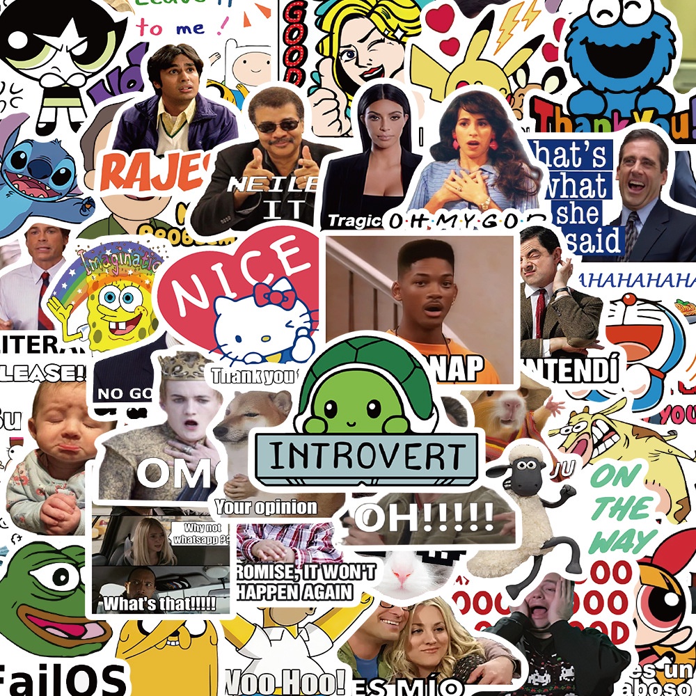 1000/50PCS Influenciador De Mídias Sociais MEME Emoticons Adesivos De Grafite À Prova D'água Para Capacete De Bicicleta Decalques De Lápis De Conta Manual LanLanStickersWorld